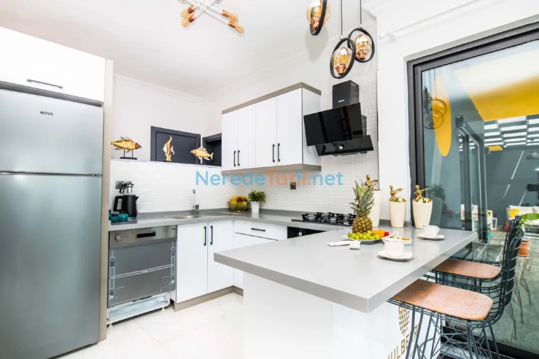 Villanın konumu da oldukça avantajlıdır; plaja 9 km mesafede olup, merkezi noktalara, market ve restoranlara sadece 3 km uzaklıktadır. Huzurlu bir tatil arayanlar için Kördere'deki bu villa, ihtiyaç duyduğunuz tüm konforu ve keyfi sunmaktadır.