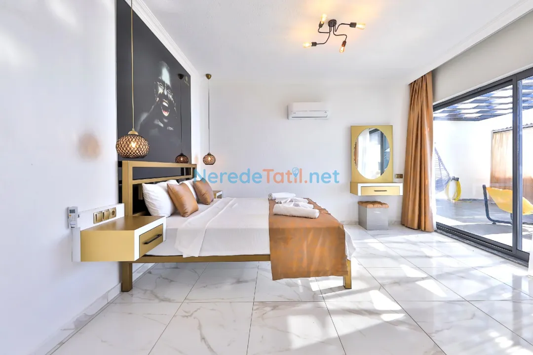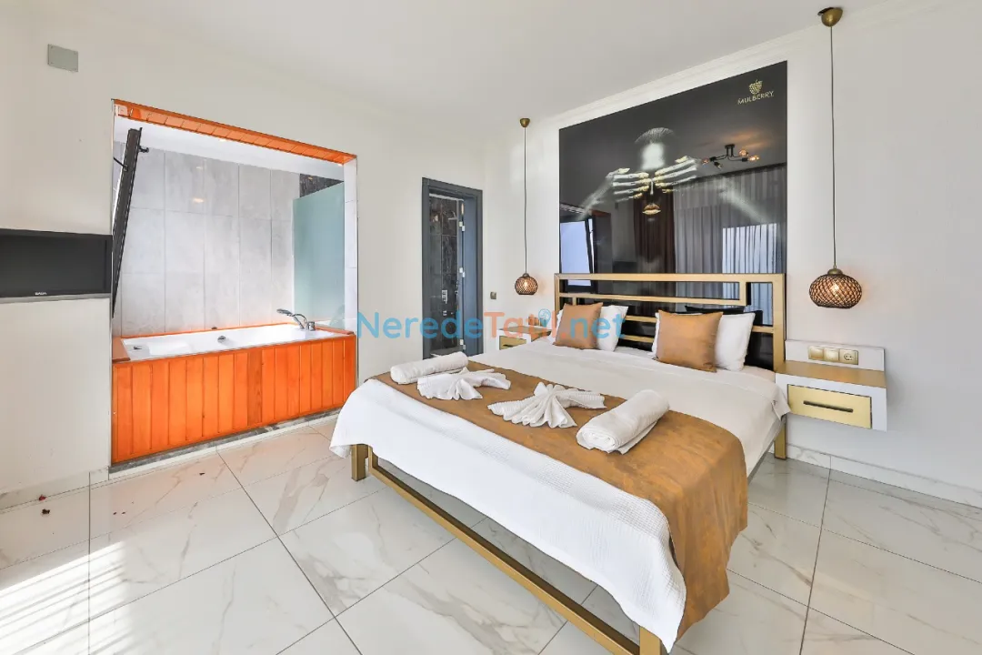 Villanın konumu da oldukça avantajlıdır; plaja 9 km mesafede olup, merkezi noktalara, market ve restoranlara sadece 3 km uzaklıktadır. Huzurlu bir tatil arayanlar için Kördere'deki bu villa, ihtiyaç duyduğunuz tüm konforu ve keyfi sunmaktadır.