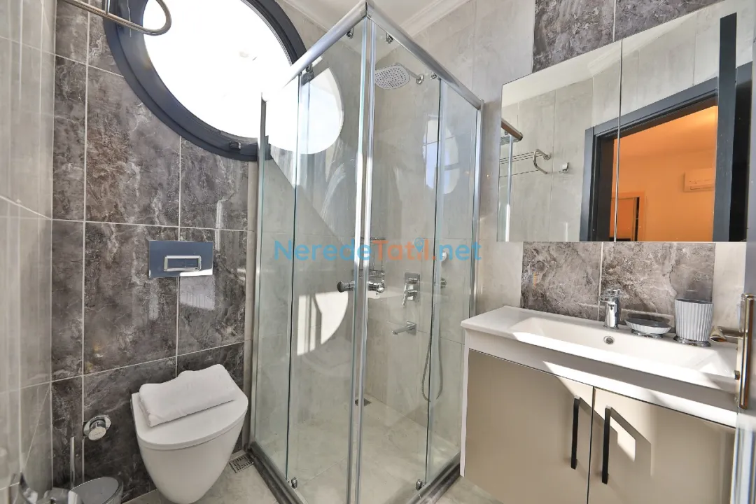 Villanın konumu da oldukça avantajlıdır; plaja 9 km mesafede olup, merkezi noktalara, market ve restoranlara sadece 3 km uzaklıktadır. Huzurlu bir tatil arayanlar için Kördere'deki bu villa, ihtiyaç duyduğunuz tüm konforu ve keyfi sunmaktadır.