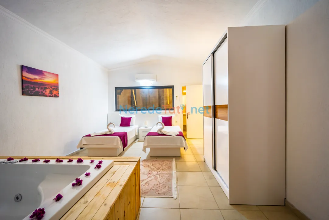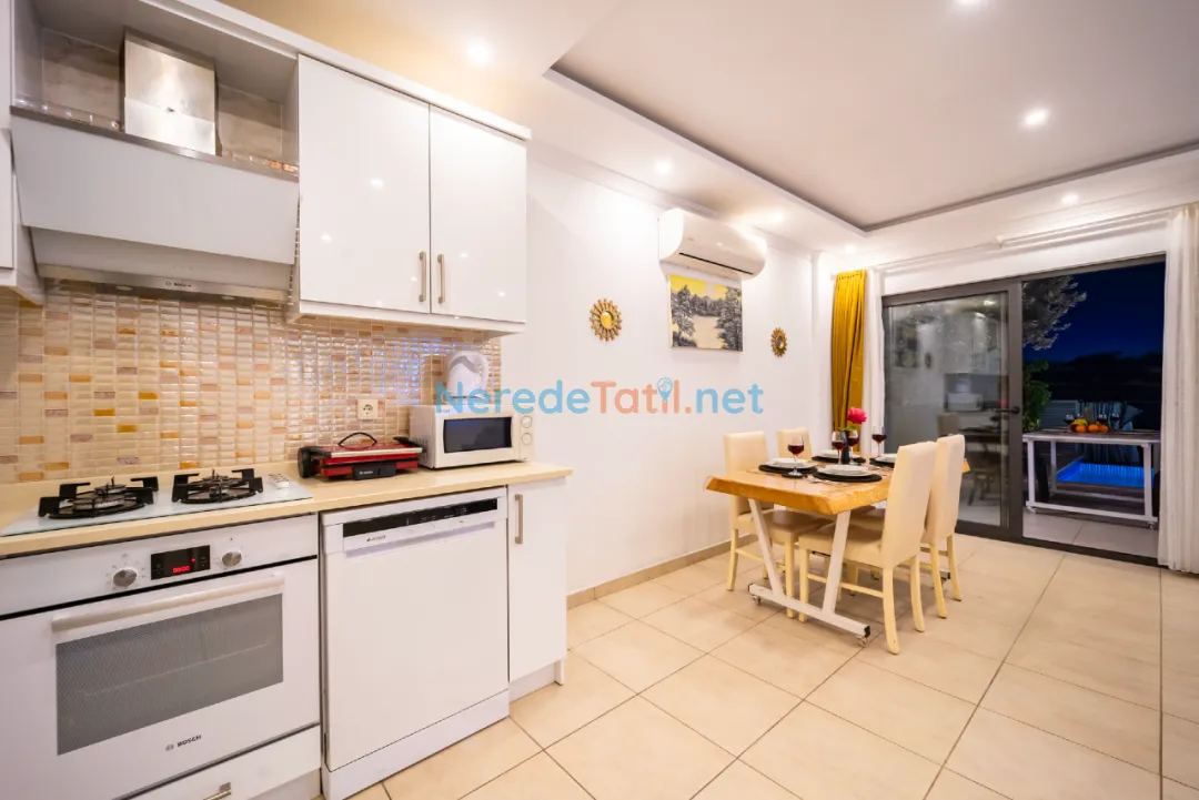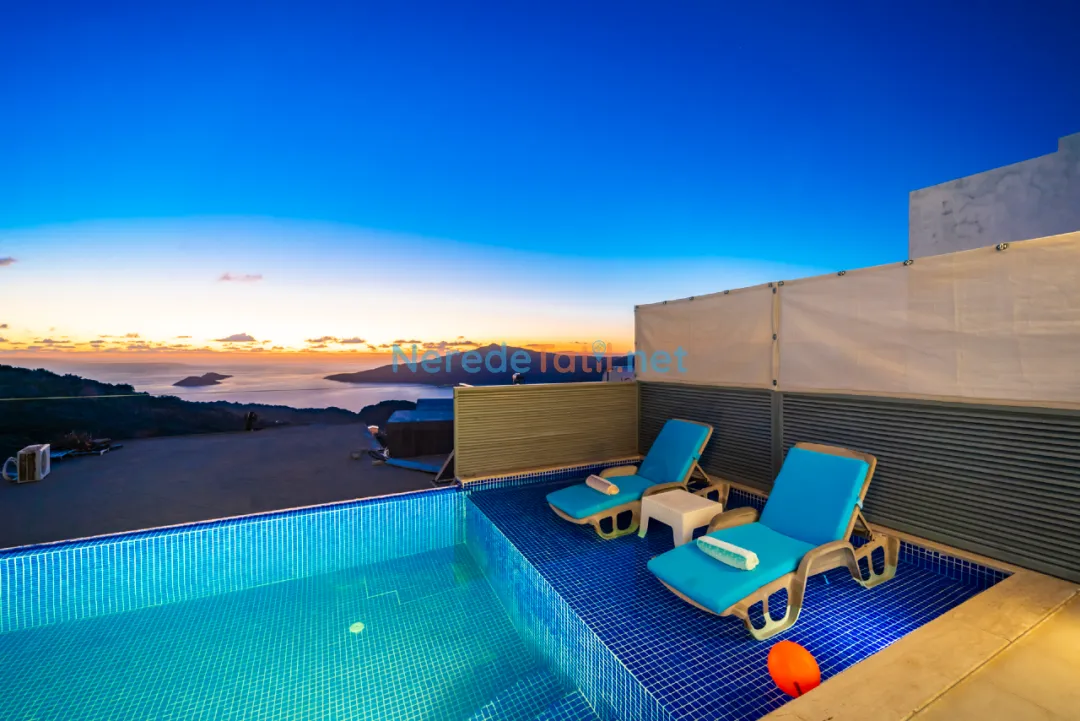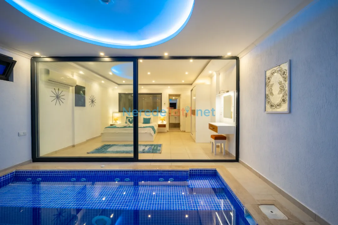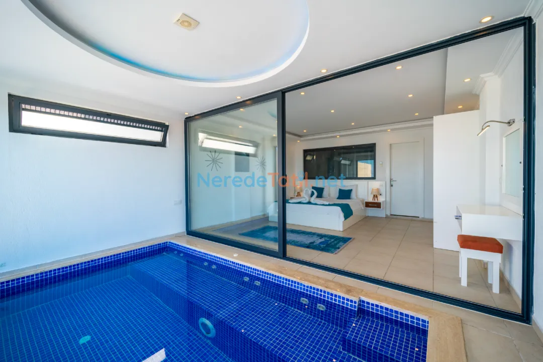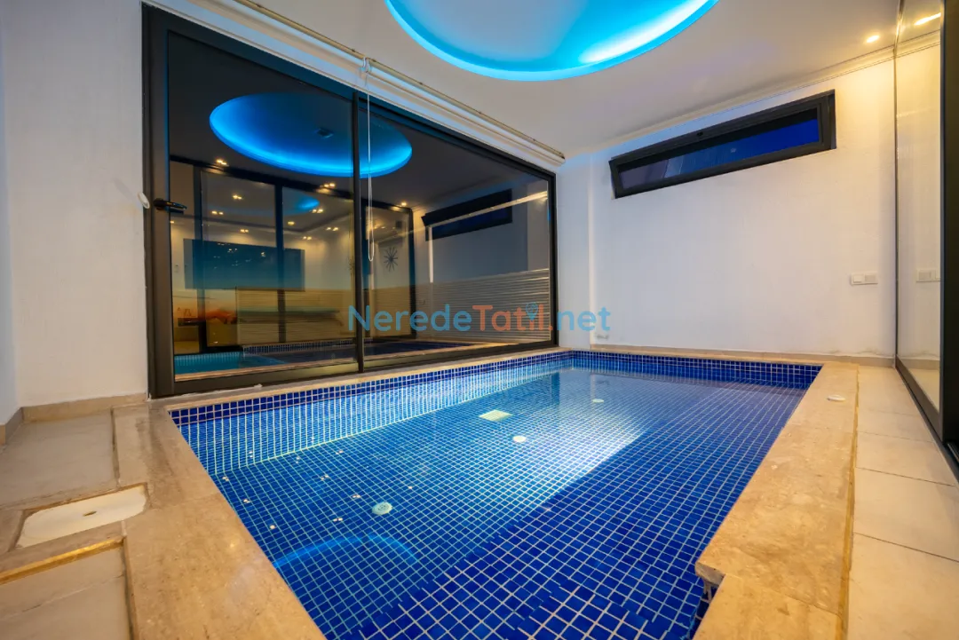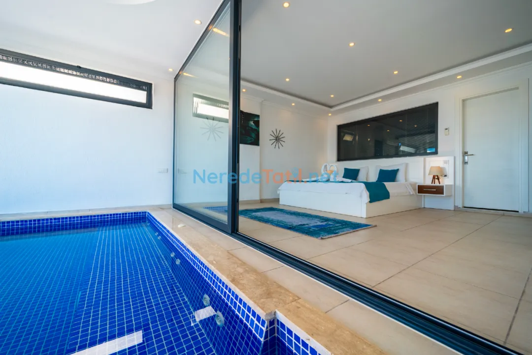 Villanın iç mekanında jakuzi ve kapalı havuz gibi lüks detaylar bulunmaktadır. Kapalı havuzun ölçüleri 2,5 metre en, 4 metre boy ve 0,8 metre derinliğindedir. Dışarıda yer alan özel havuz ise 4 metre eninde, 12 metre boyunda ve 1,6 metre derinliğe sahiptir. Havuzun korunaklı yapısı, huzurlu bir tatil imkanı sunar. Ayrıca villanın geniş bahçe alanında BBQ - Mangal keyfi yaşanabilir.