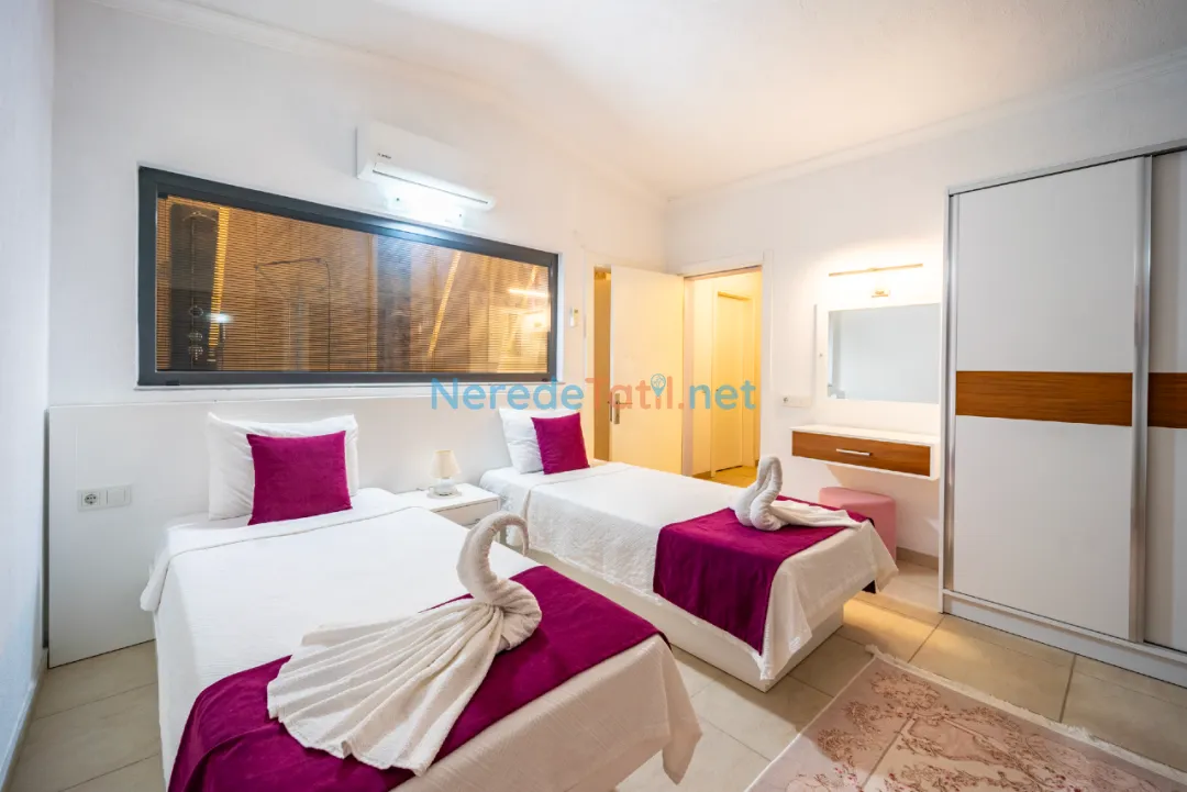 Kördere'nin büyüleyici doğasında konumlanmış bu villa, deniz manzarası ve özel havuz keyfiyle konuklarını ağırlamaktadır. Balayı villaları kategorisine giren bu konforlu mekan, aynı zamanda muhafazakar tatilciler için de idealdir. Villa, iki yatak odası ve iki banyo ile dört kişilik bir kapasite sunarak, çift kişilik ve tek kişilik yataklar ile donatılmıştır.