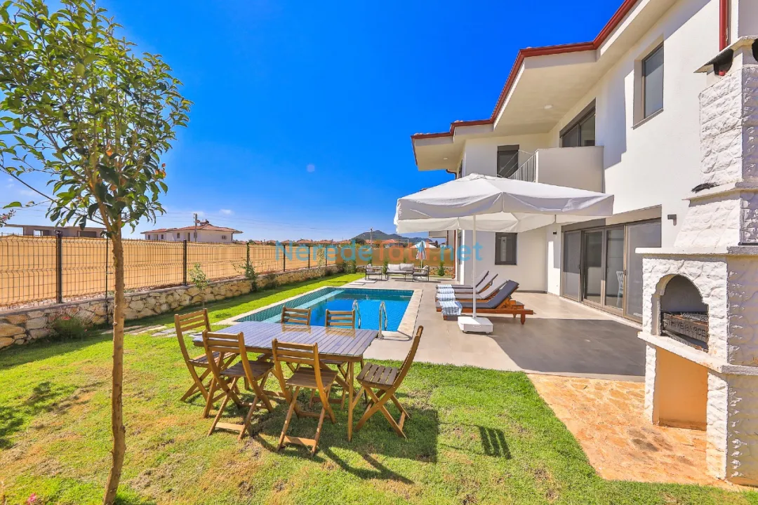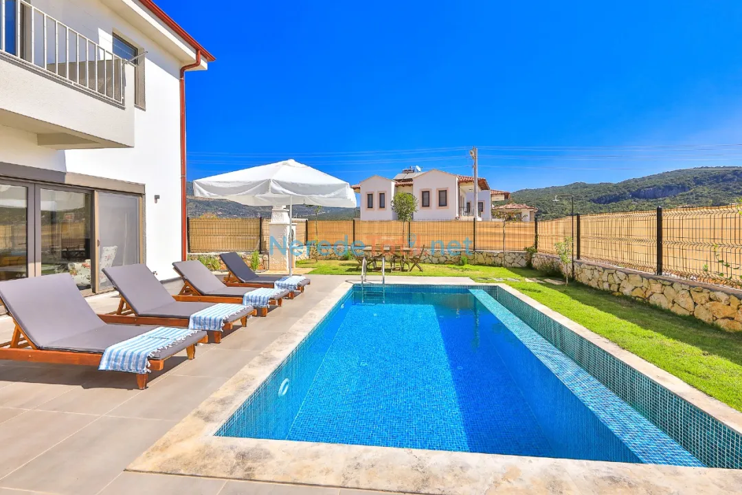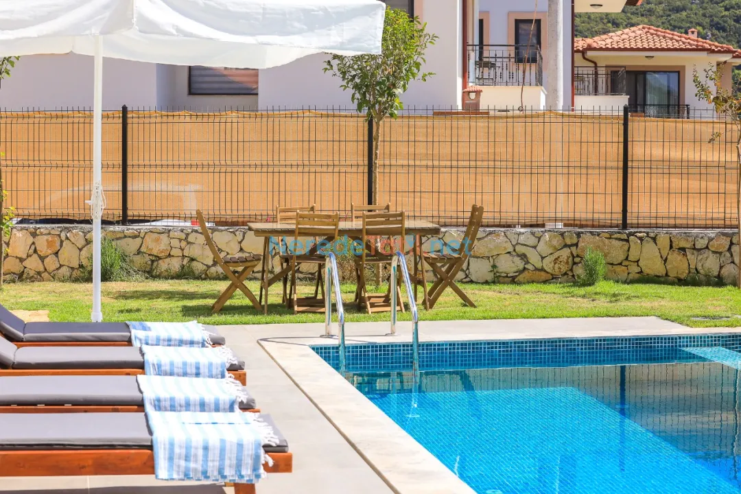 Villanın en dikkat çekici özelliklerinden biri, korunaklı özel yüzme havuzudur. 3 metre genişliğinde, 10 metre uzunluğunda ve 1.5 metre derinliğindeki bu havuz, özellikle mahremiyetine önem veren misafirler için idealdir. Doğa manzarası eşliğinde havuzun keyfini çıkarırken, geniş bahçe alanında huzur bulabilirsiniz.