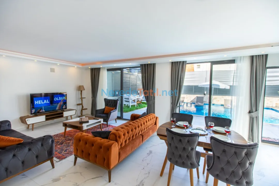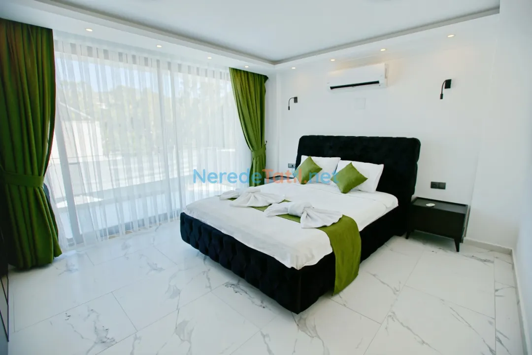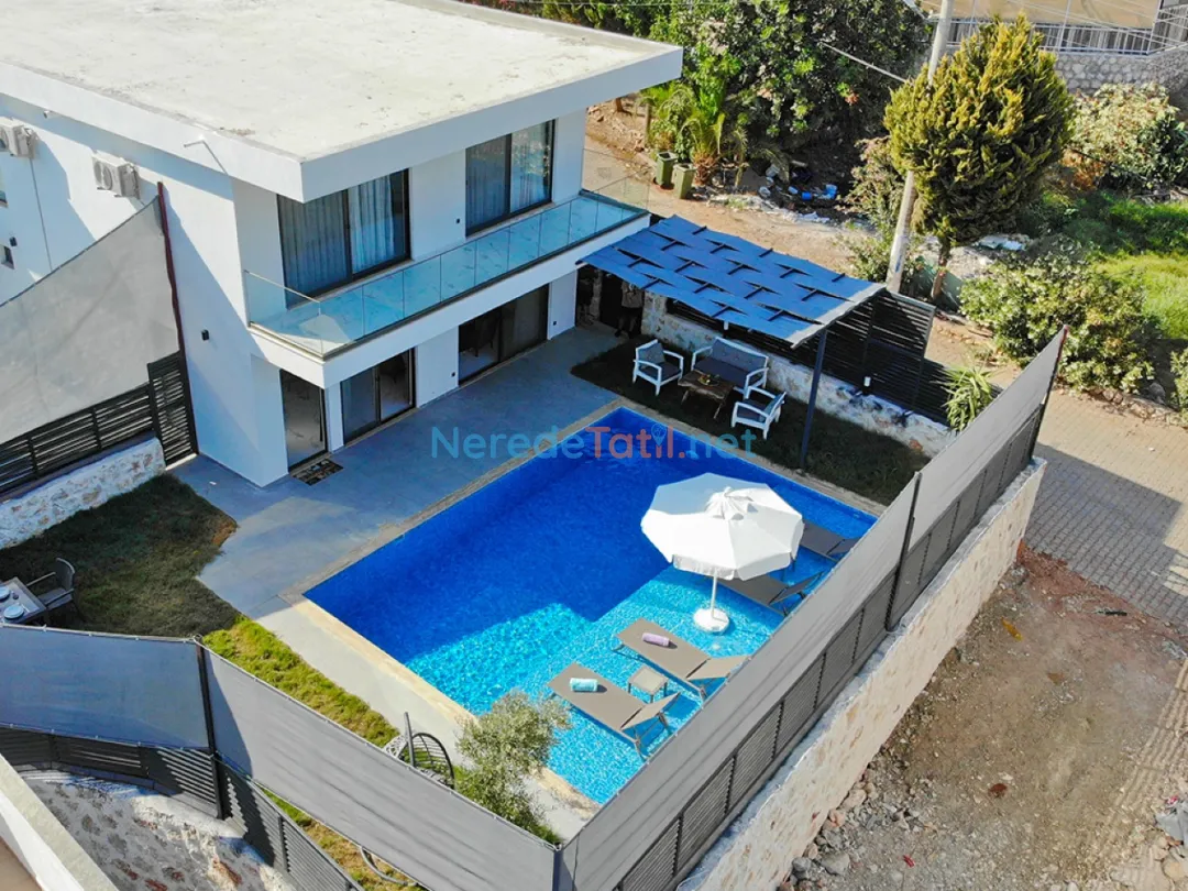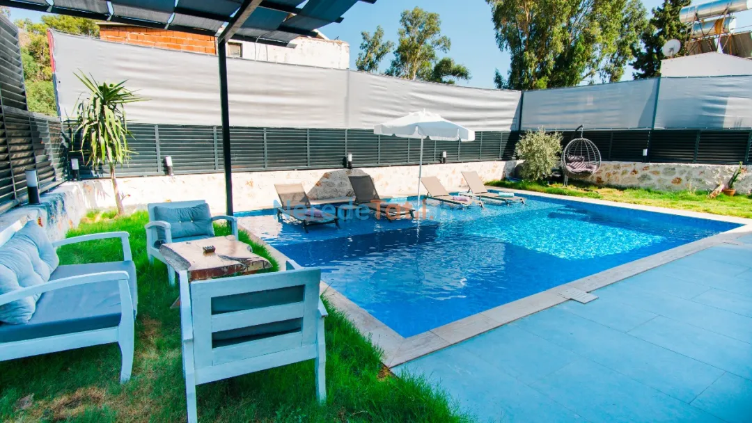 Patara'nın doğal güzellikleri içinde konumlanmış bu özel villa, dört kişilik kapasitesiyle rahat bir konaklama sunuyor. Villada iki adet çift kişilik yatak bulunmakta, bu da konforlu bir uyku deneyimi garanti eder. Özel yüzme havuzu, 3.5 metre genişliğinde ve 8.5 metre uzunluğunda olup, 1.5 metre derinliğindedir; bu da serinlemek için ideal bir ortam sunar. Çocuk havuzu bulunmamakla birlikte, yetişkinler tatilin keyfini havuzun serin sularında çıkarabilirler.