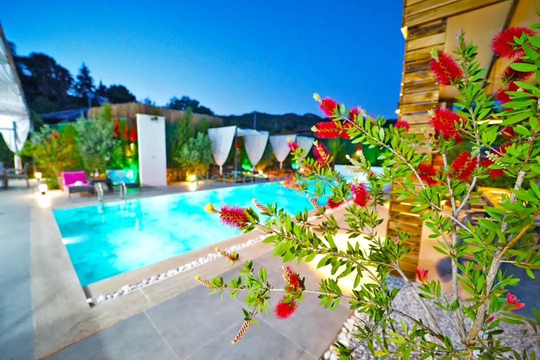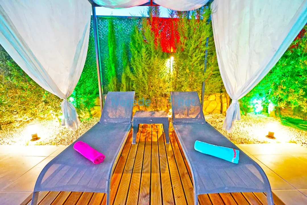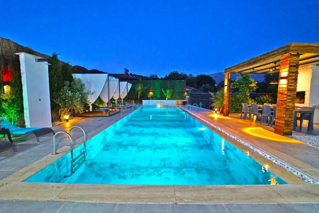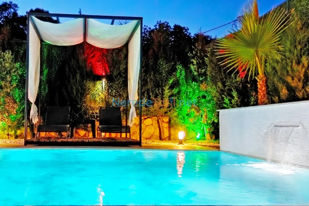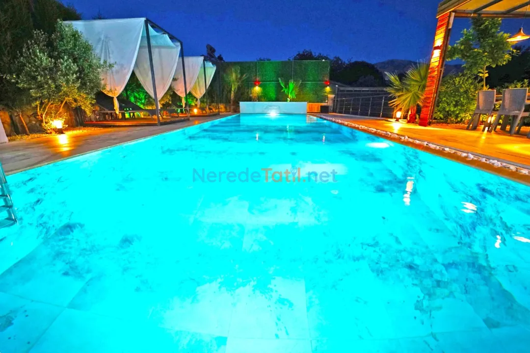 Villanın en dikkat çekici özelliklerinden biri özel yüzme havuzudur. Havuz, 4 metre genişliğinde, 14 metre uzunluğunda ve 1.6 metre derinliğindedir. Havuzun korunaklı yapısı, misafirlerin gözlerden uzak bir şekilde serinlemesine olanak tanır. Çocuk havuzu bulunmamakla birlikte, geniş bahçesi ve doğa manzarası ile aileler için huzurlu bir ortam sağlar.