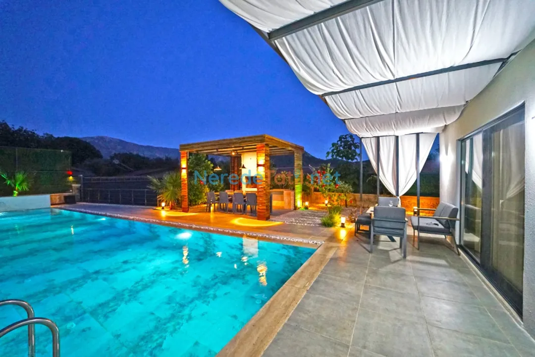 Çevredeki olanaklar bakımından zengin olan villa, market ve restoranlara 1 km mesafededir. Plaja ulaşmak için 5 km, şehir merkezine ise 10 km uzaklıkta bulunan villa, sakinliğe ve doğaya yakın bir tatil arayanlar için mükemmel bir seçimdir.