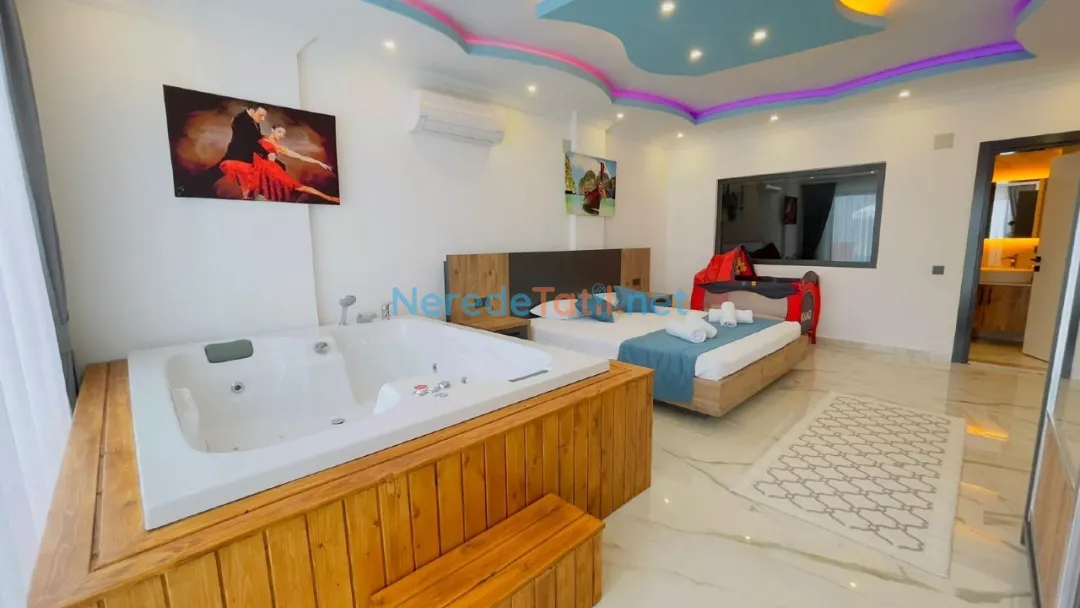 Villanın genişliği 4 metre, uzunluğu ise 11 metre olan özel yüzme havuzu tatilinizin keyfini artıracak. Havuz, 1.55 metre derinliğe sahiptir ve deniz manzarası sunmamaktadır. Ancak doğanın kucağında, sessiz ve sakin bir tatil yapabilirsiniz.