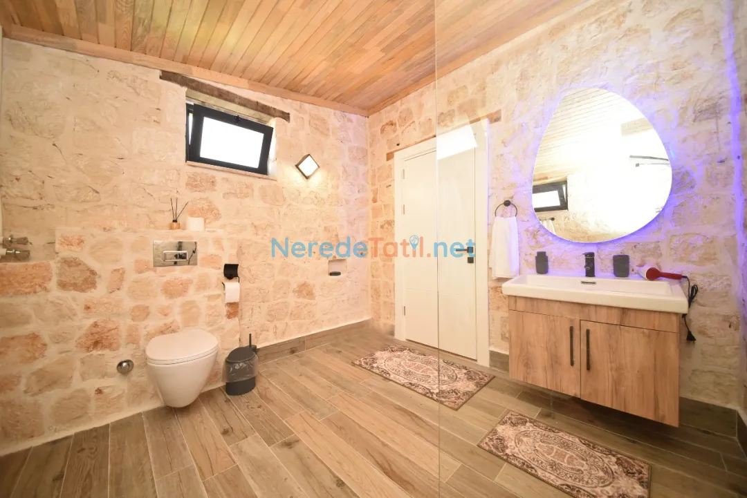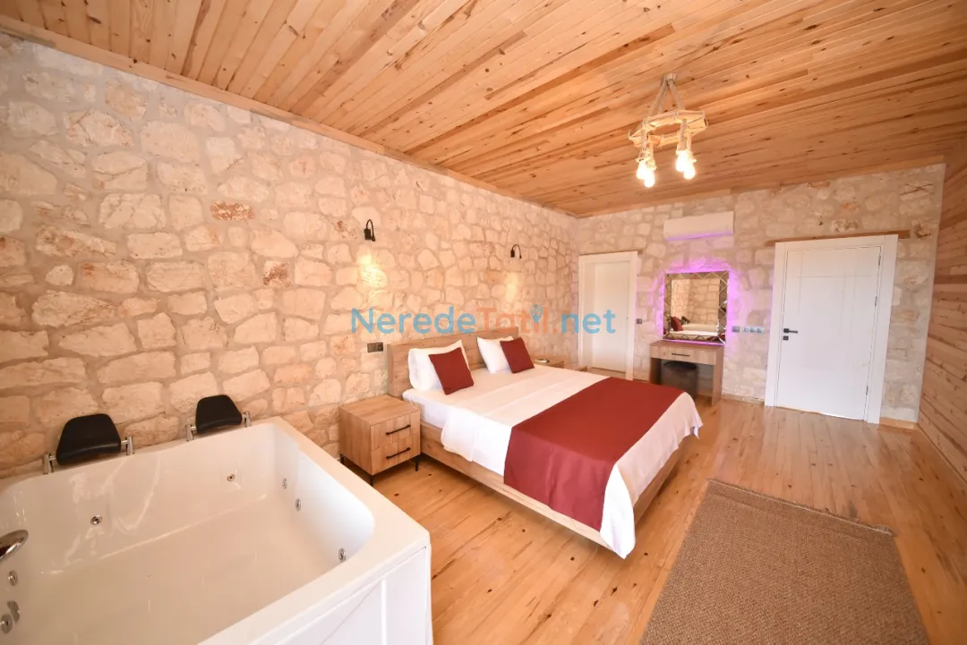 Demre'nin eşsiz doğasında konumlanan bu lüks villa, dört kişilik konaklama kapasitesiyle tatilcilerini ağırlamaya hazır. Villanızda iki geniş yatak odası bulunmakta ve her birinde çift kişilik yatak yer almaktadır. Konforlu bir tatil deneyimi için iki modern banyo da mevcuttur.