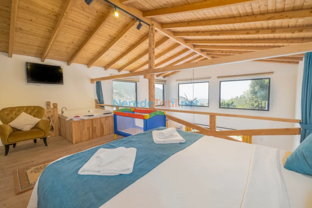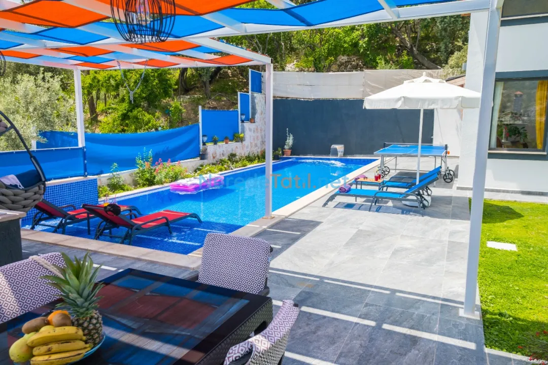 Villamızda, doğanın eşsiz manzarasının tadını çıkarabileceğiniz geniş bir bahçe bulunur. Tatiliniz sırasında, jakuzi ile rahatlayabilir, mangal yaparak keyifli anlar yaşayabilirsiniz. Ayrıca, villanın korunaklı havuzu sayesinde gizliliğinizin tadını çıkarabilirsiniz. Eğlenceli vakit geçirmek isteyenler için langırt ve masa tenisi gibi olanaklar da mevcuttur.
