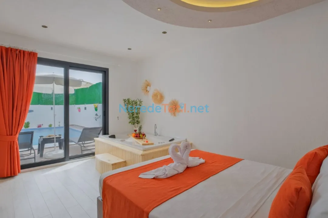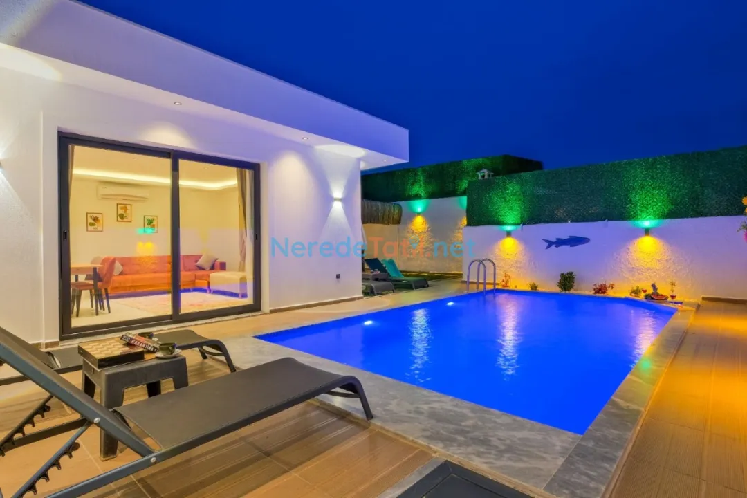 Fethiye'nin eşsiz doğal güzellikleri içinde konumlanmış bu villa, dört kişilik konuk kapasitesiyle huzurlu bir tatil sunuyor. İki yatak odasında çift kişilik yataklar bulunurken, ailenizin en küçük üyesi için bir bebek yatağı da mevcut. İki banyosuyla konforu ön planda tutan villa, özel yüzme havuzu ile konuklarına ayrıcalıklı bir deneyim yaşatıyor. Havuzun boyu yaklaşık 7.5 metre, eni ise 3.5 metre olup, derinliği 1.55 metre ile yüzme keyfini doyasıya yaşatacak.