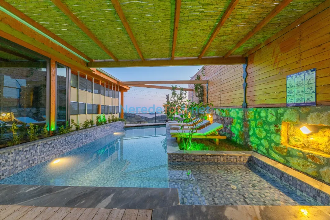 Bu eşsiz villa, Kördere'nin deniz manzaralı ve doğa ile iç içe konumunda yer almaktadır. Özel bir havuza sahip olan villa, huzurlu ve rahatlatıcı bir tatil deneyimi sunar. Havuzun boyutu, 3.50 metre genişliğinde ve 7.50 metre uzunluğundadır, derinliği ise 1.55 metredir. Korunaklı havuz tasarımı sayesinde, mahremiyetinize önem veren bir tatil geçirebilirsiniz.