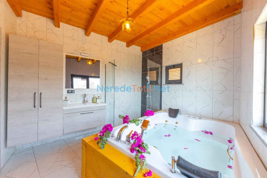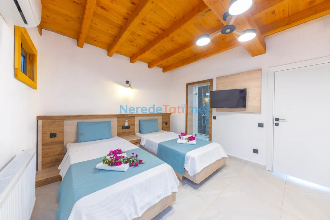 Villa, 4 kişi kapasiteli olup, iki yatak odası ve iki banyo bulunmaktadır. Yatak odalarından biri çift kişilik yatak, diğeri ise iki tek kişilik yatak ile donatılmıştır. Villada ayrıca jakuzi bulunmakta, bu da konforunuzu artıran detaylardan biridir.