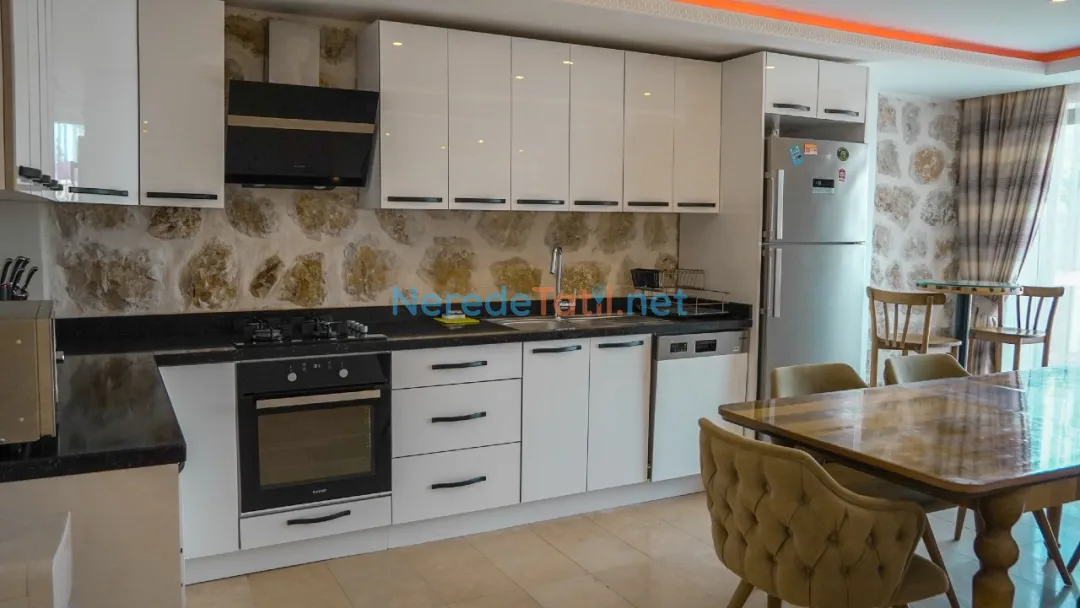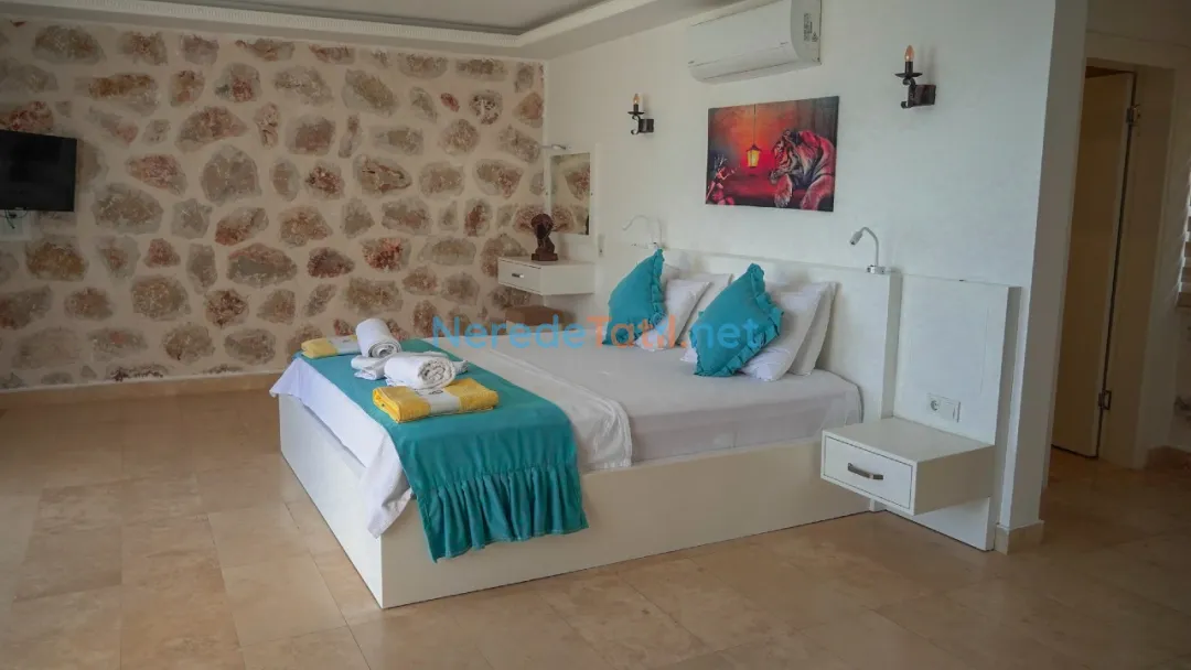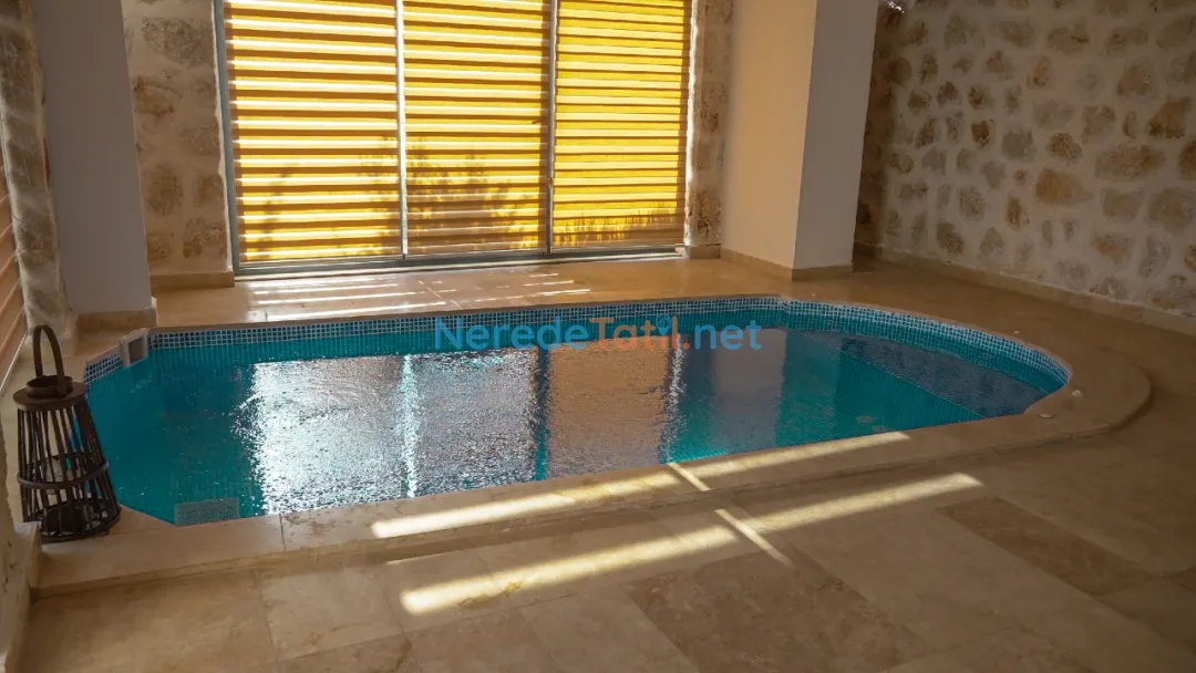 Villanın özel havuzu, 4.5 metre genişliğinde ve 11 metre uzunluğunda olup, 1.65 metre derinliğindedir. Havuz, tamamen korunaklı olup, dışarıdan görünmeyecek şekilde tasarlanmıştır. Bu özellik, muhafazakar tatilciler için ideal bir seçenektir.