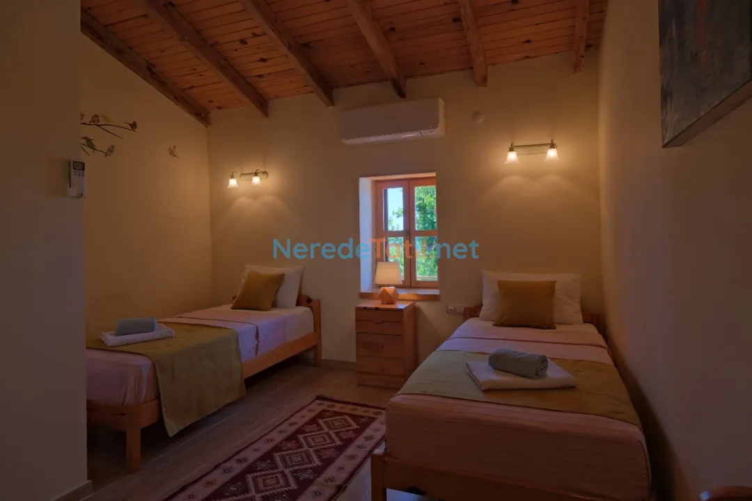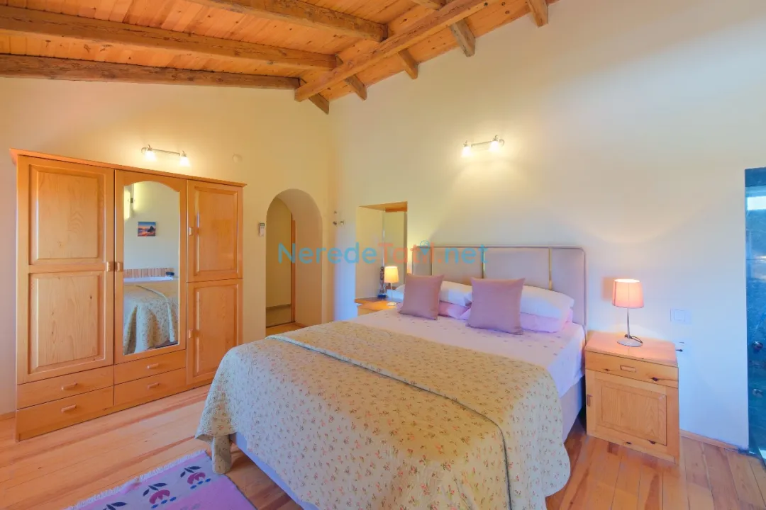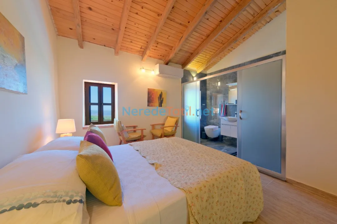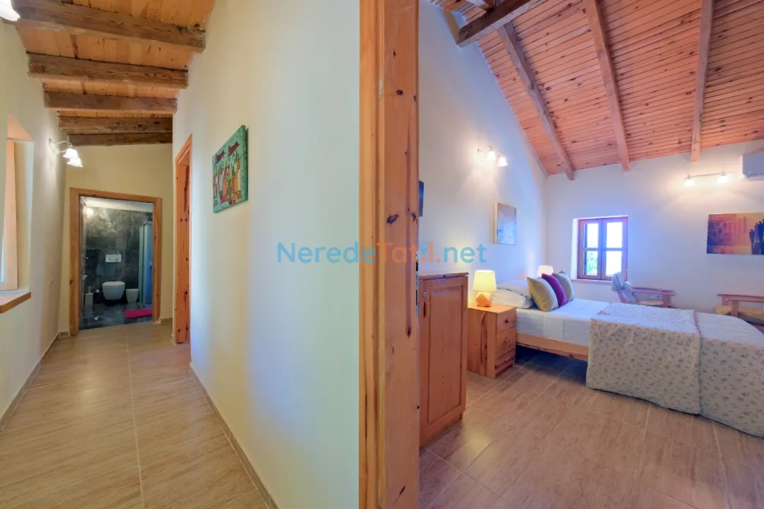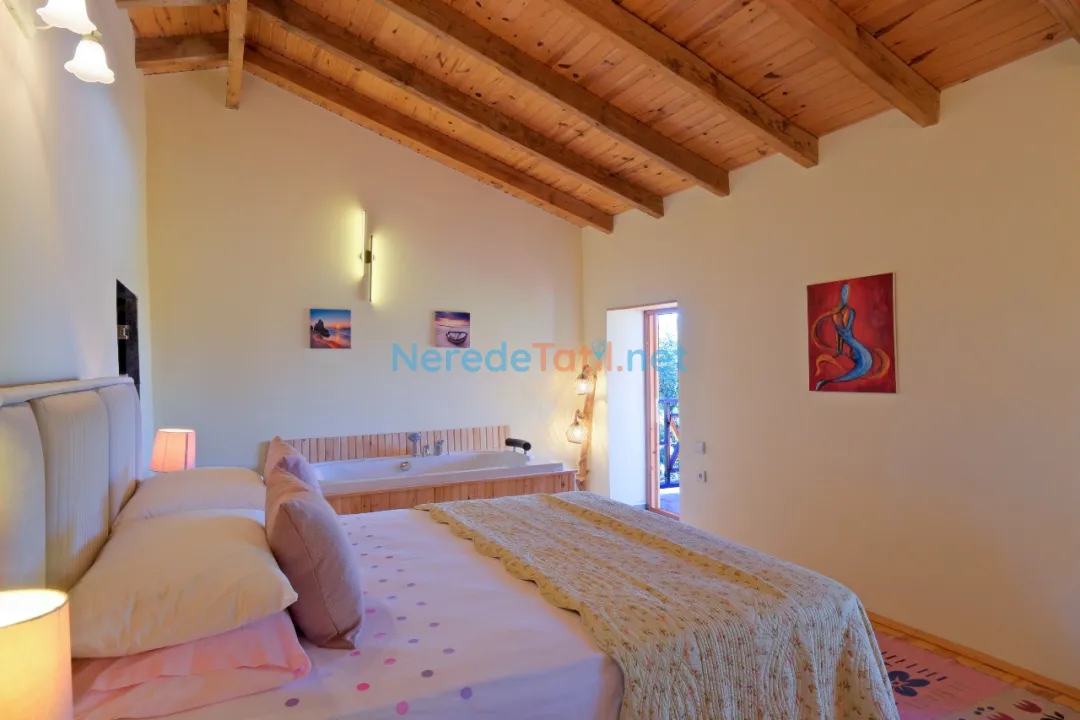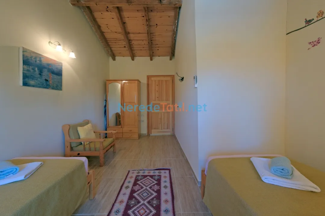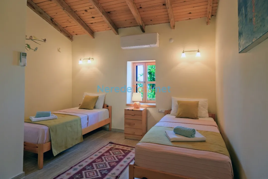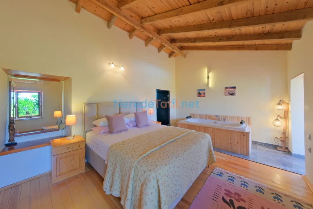 Üzümlü'nün eşsiz doğası içinde özel havuzlu ve bahçeli villamızda huzurlu bir tatil sizleri bekliyor. Bu ekonomik villa, özellikle balayı çiftleri için ideal bir seçenek sunuyor. Üç yatak odası ve iki banyo ile altı kişiye kadar konaklama imkanı sunan villa, iki çift kişilik ve iki tek kişilik yatak ile donatılmıştır.