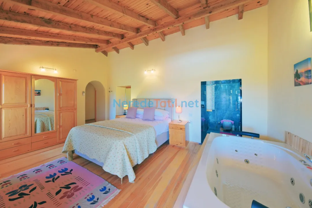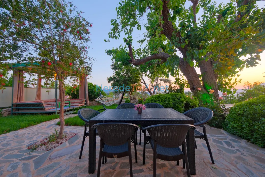 Villanın doğa manzarası, huzur dolu tatilinizi tamamlayacak özel bir detaydır. Ayrıca, BBQ - mangal alanı, otopark imkanı, saç kurutma makinesi ve ütü gibi detaylar konforunuzu artırmak için düşünülmüştür. Üzümlü'nün sakin atmosferinde, bu villa ile unutulmaz bir tatil deneyimi yaşayabilirsiniz.