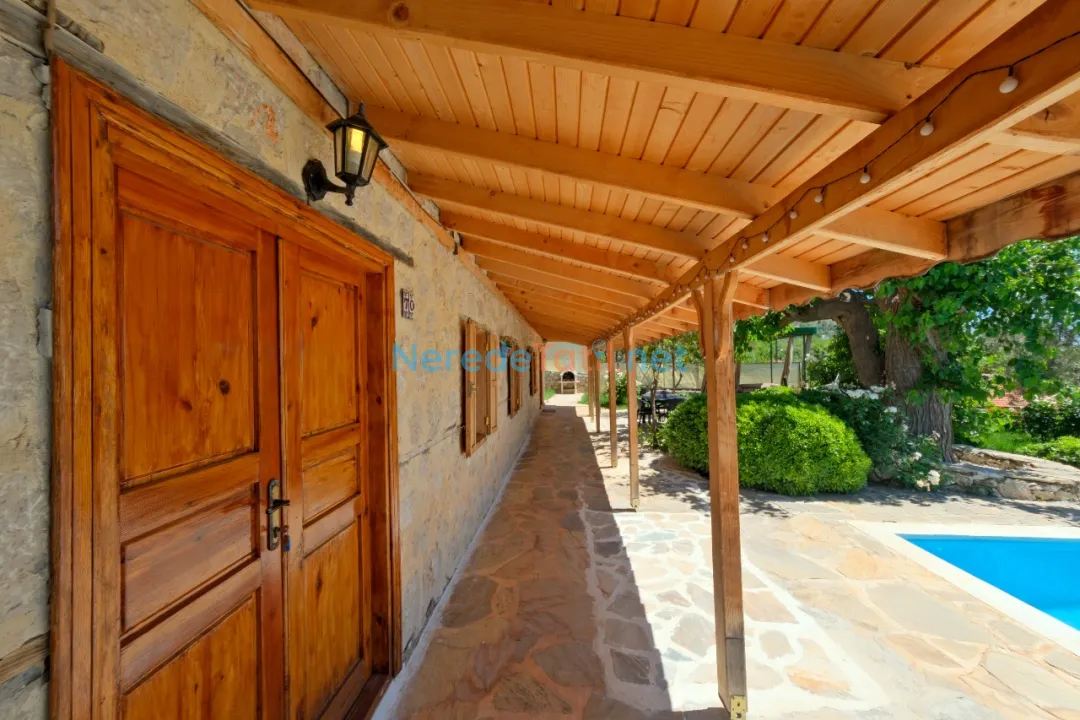 Villanın geniş yüzme havuzu, 4 metre eninde, 11 metre boyunda ve 1.6 metre derinliğindedir. Bu havuz, sevdiklerinizle keyifli vakit geçirmeniz için mükemmel bir ortam sunar. Konum olarak villa, plaja 9 km, markete 2 km ve restorana sadece 1 km mesafededir, bu da ihtiyaçlarınıza kolayca ulaşmanızı sağlar.