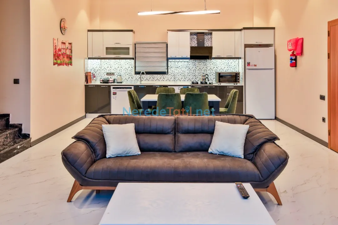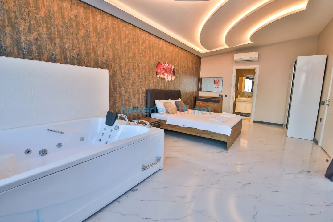 Plaja 12 km, merkeze ve hastaneye 11.5 km, en yakın market ve restorana ise 3.5 km mesafededir. İslamlar'daki bu eşsiz villa, lüks ve konforun birleştiği özel bir tatil ortamı sunarken, balayı ve muhafazakar tatil arayışında olanlar için de ideal bir seçenektir.