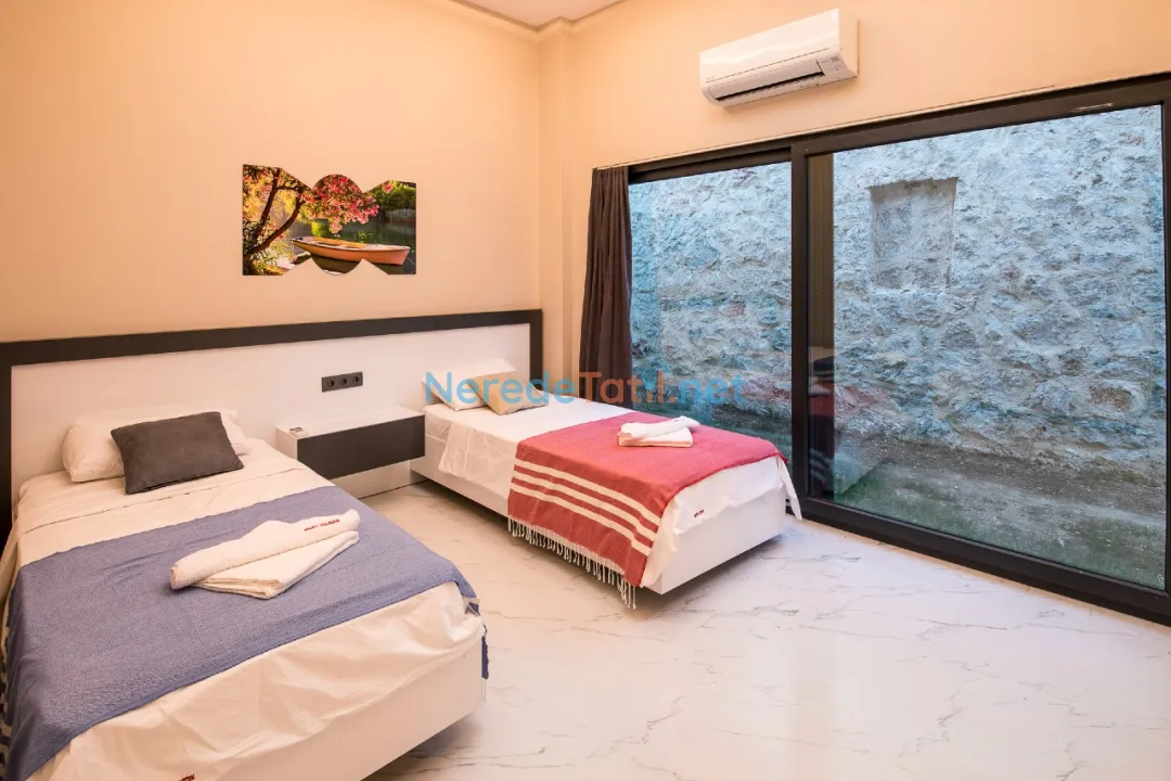 Villada konforlu bir konaklama için gereken tüm özellikler mevcut. İki yatak odası ve iki banyosu bulunan bu villa, maksimum dört kişi kapasitesi ile hem balayı çiftlerine hem de küçük ailelere hitap ediyor. Yatak odalarından biri çift kişilik yatak ile donatılmışken, diğerinde iki tek kişilik yatak bulunmaktadır. Özenle tasarlanmış iç mekanında jakuzi keyfini çıkarabilirsiniz.
