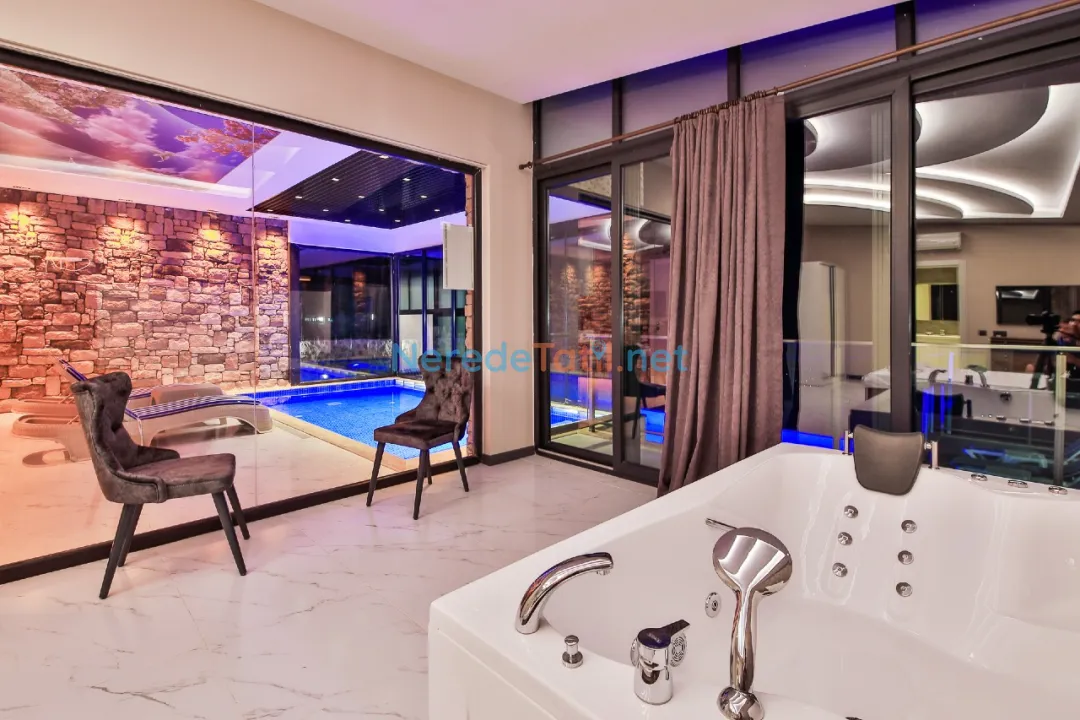 İslamlar'ın huzur dolu atmosferinde, deniz ve doğa manzarasına sahip bu lüks villa, unutulmaz bir tatil deneyimi sunuyor. Özel havuz alanı, 1.10 metre eninde ve 4.00 metre boyunda, misafirlerine serinletici bir keyif sunarken, kapalı havuzuyla da ısıtmalı seçenek sağlıyor. Bu kapalı havuz, 2.70 metre eninde ve 5.20 metre boyunda olup, 1.25 metre derinliğindedir.