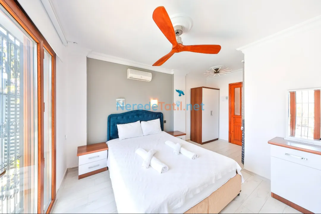 Kızıltaş bölgesinde, lüks bir tatil deneyimi yaşamak isteyenler için özenle tasarlanmış villamız, deniz manzarası ile konuklarını büyülüyor. Villamız, toplam 9 kişilik konaklama kapasitesi sunarak, 4 yatak odası ve 4 banyosuyla geniş aileler veya arkadaş grupları için ideal bir konfor sağlıyor.