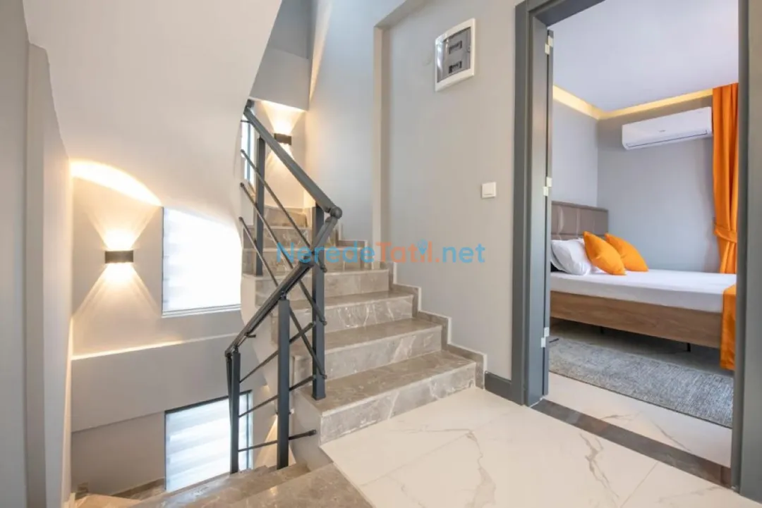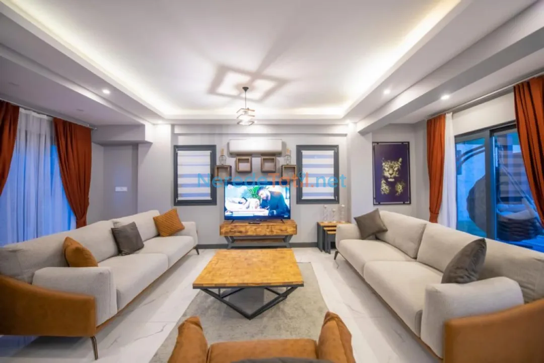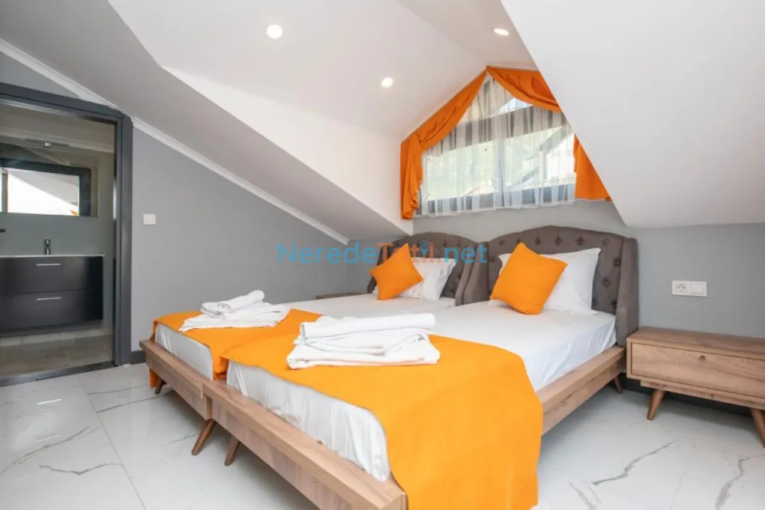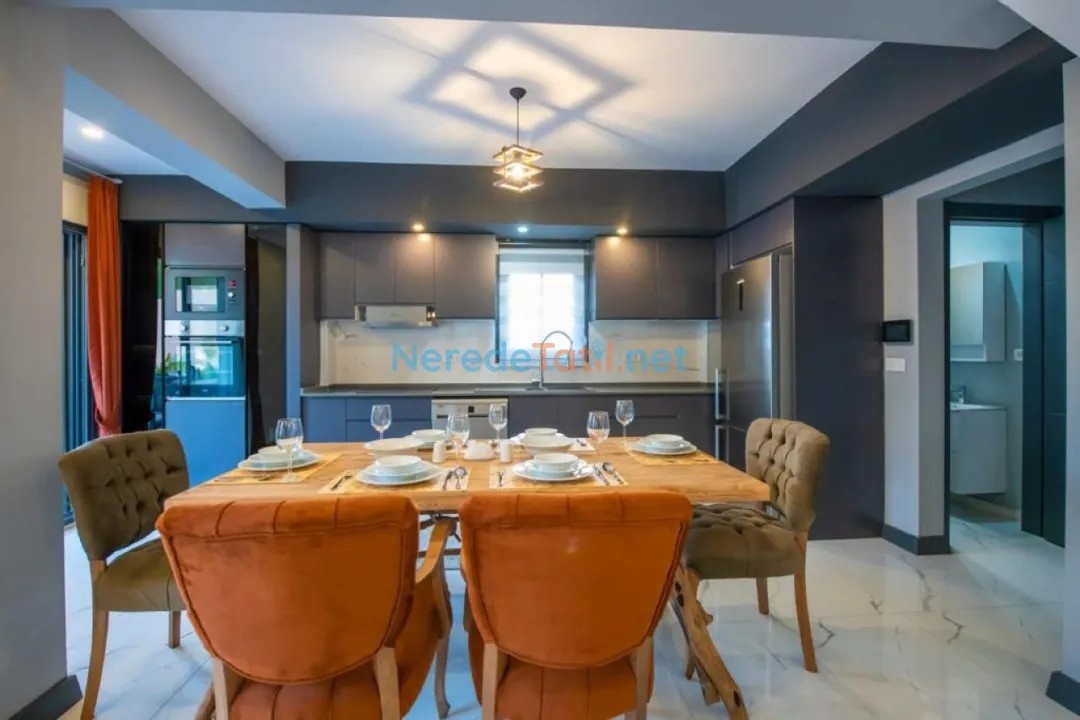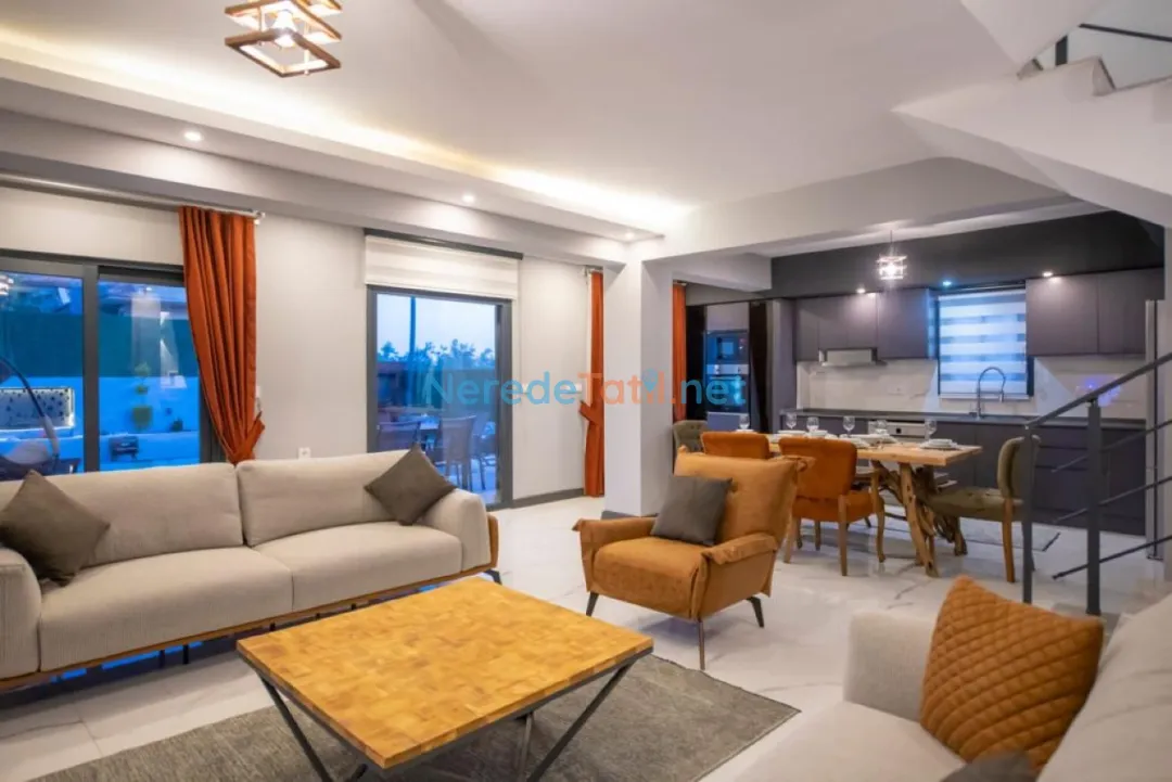 Ovacık'ın büyüleyici doğasında yer alan bu lüks villa, 8 kişilik kapasitesi ile kalabalık aileler ve arkadaş grupları için ideal bir konaklama sunar. Villada toplamda dört yatak odası ve dört banyo bulunmakta olup, konforunuz için üç çift kişilik ve iki tek kişilik yatak yer almaktadır. Geniş özel yüzme havuzu 1.40 metre derinliğinde, 4 metre boyunda ve 1.10 metre enindedir. Ayrıca, çocuklar için özel olarak tasarlanmış bir çocuk havuzu da mevcuttur ve bu havuzun derinliği 0.40 metredir. Çocuk havuzu, 2 metre boyunda ve 2 metre enindedir.