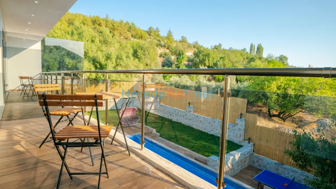 Konuklar, 3.5 metre genişliğinde ve 8 metre uzunluğundaki havuzun keyfini çıkarırken aynı zamanda doğa manzarasının tadını çıkarabilirler. Villada masa tenisi, BBQ - Mangal ve ütü gibi olanaklar da mevcuttur.