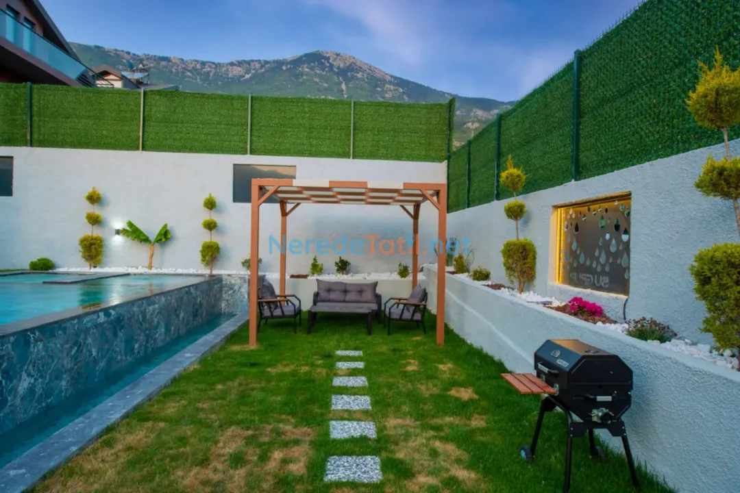 Villamızın sunduğu bahçeli alan, doğa ile iç içe huzurlu anlar geçirmenizi sağlıyor. Bahçede bulunan BBQ - Mangal ile akşam yemeklerinizi açık havada, taze ve lezzetli bir şekilde hazırlayabilirsiniz. Ayrıca, villa içerisinde bulunan saç kurutma makinesi ve ütü, konforunuz için düşünülmüştür.