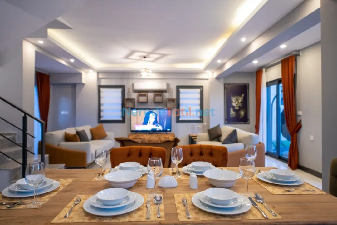 Doğa manzaralı bu lüks villa, aileler ve arkadaş grupları için ideal bir seçenektir. Tatilinizi hem eğlenceli hem de dinlendirici geçirmek istiyorsanız, Fethiye'nin kalbinde sizi bekleyen bu villayı tercih edebilirsiniz.