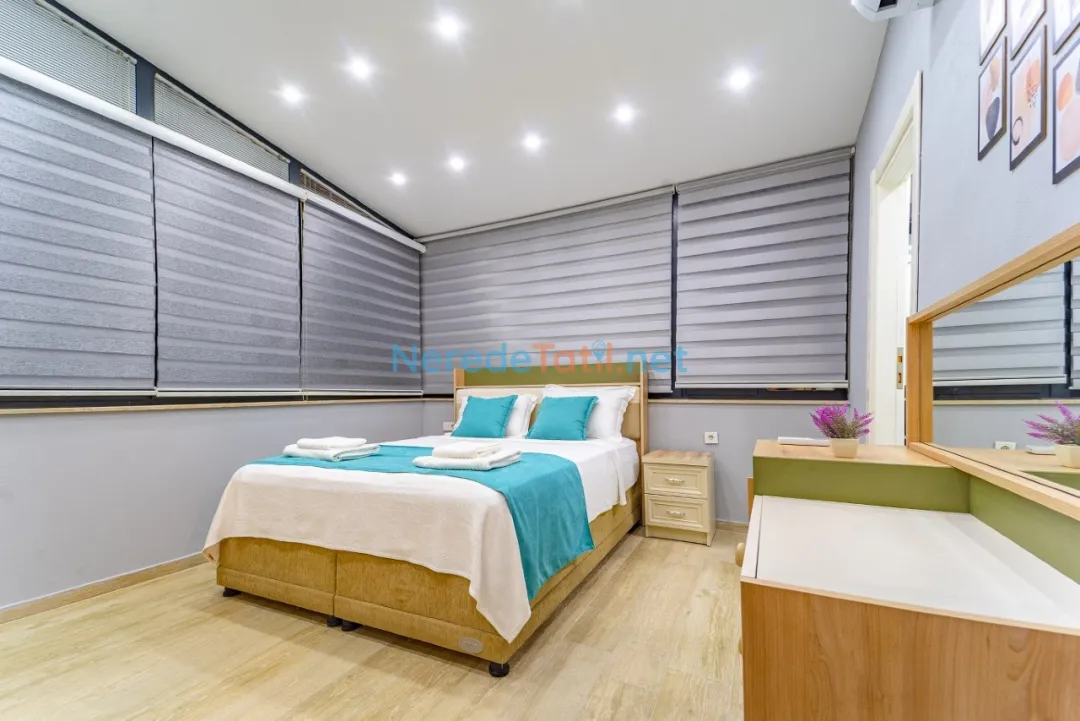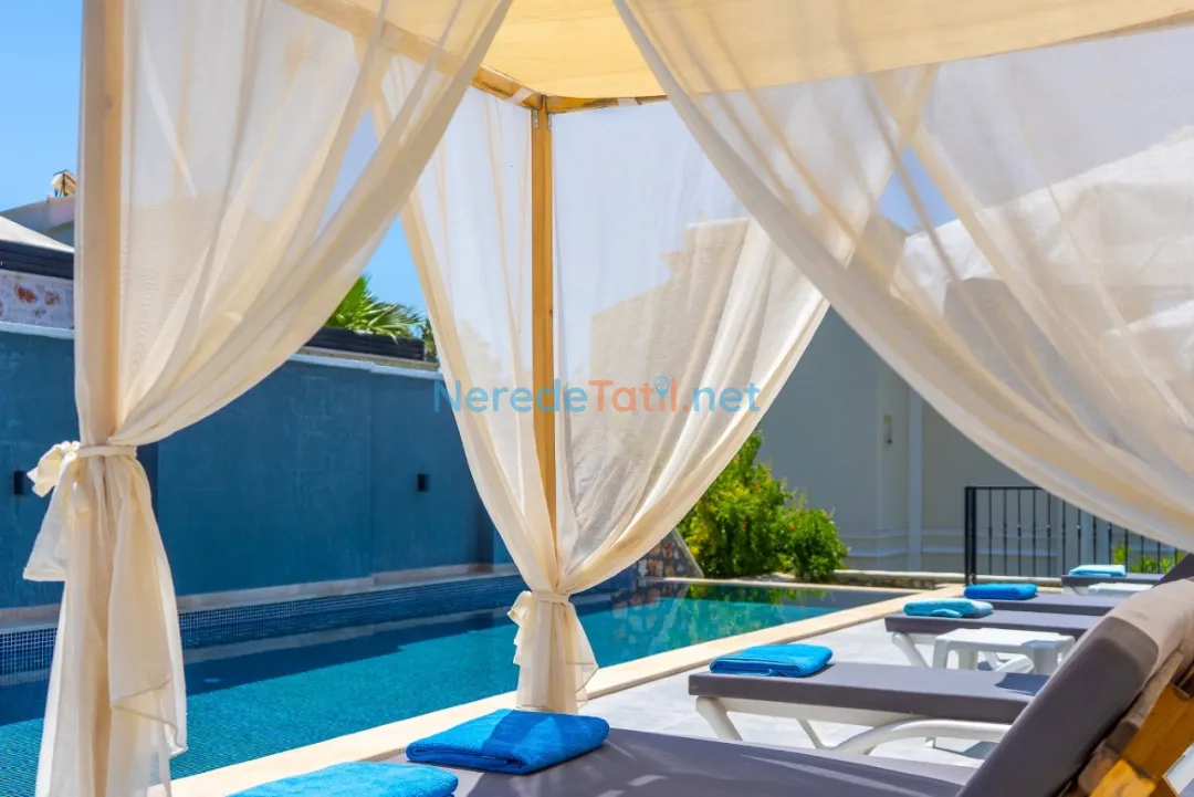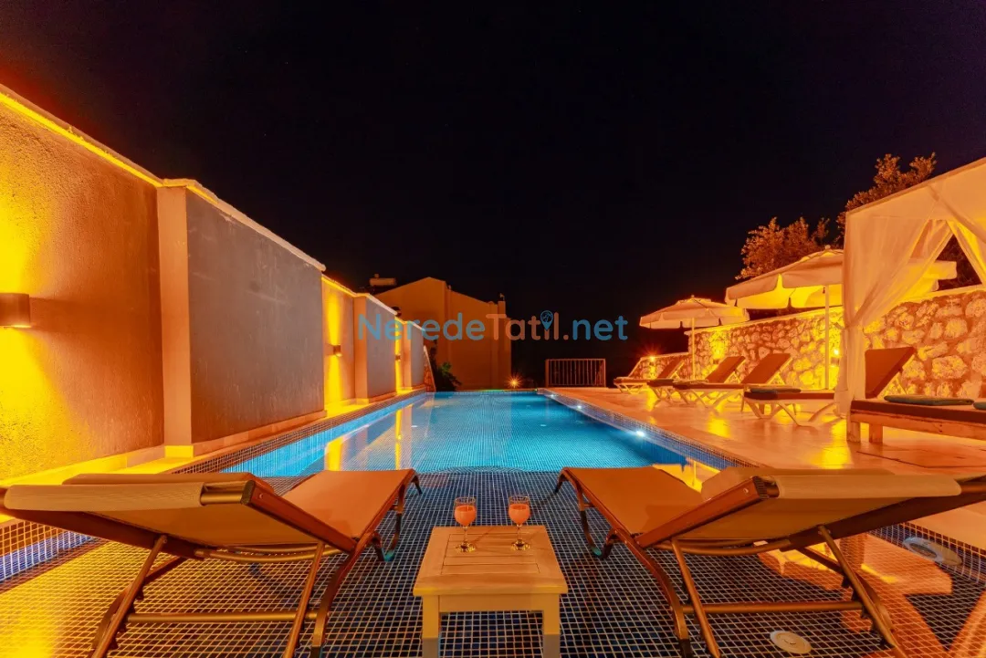 Villamız, Kalkan'ın eşsiz deniz manzarası ve doğa manzarası ile çevrilidir. Geniş ve özel yüzme havuzu, 4 metre genişliğinde ve 12 metre uzunluğundadır, ve 1.4 metre derinlikte olup, tatiliniz boyunca serinletici bir kaçış noktası sunar. Çocuk havuzu ihtiyacı olmayan bu villa, özellikle yetişkin konuklar için idealdir.