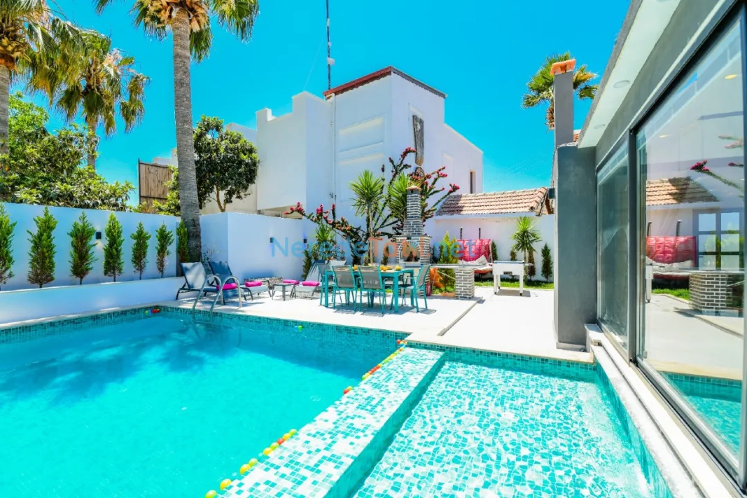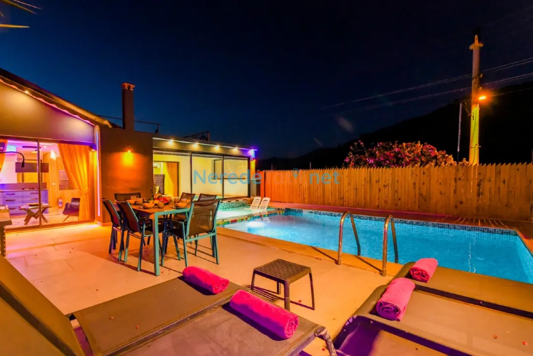 Patara'nın doğal güzellikleri içinde konumlanmış bu lüks villa, size huzur ve konforu bir arada sunmaktadır. Villamız, 4 kişilik kapasite ile ideal bir tatil ortamı sunar. İki adet çift kişilik yatak bulunan villada, 3 banyo mevcuttur ve konforlu bir tatil geçirmeniz için her detay düşünülmüştür.