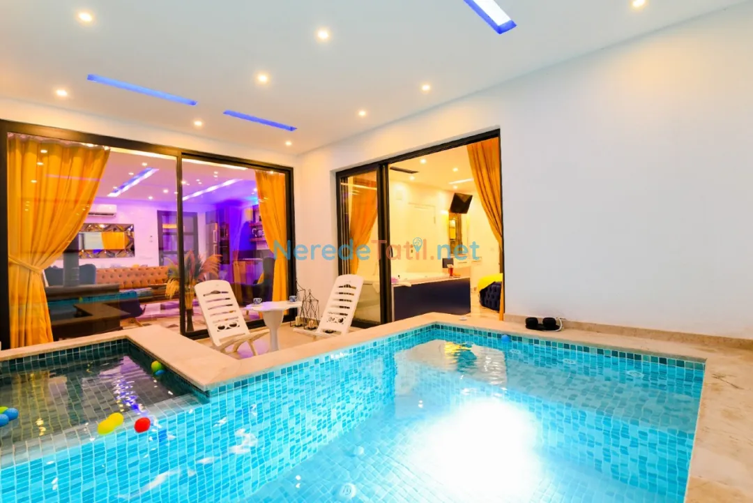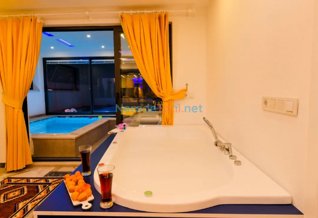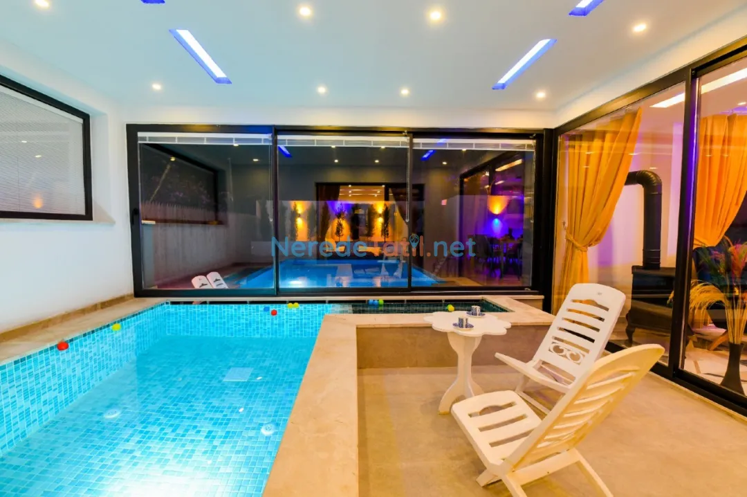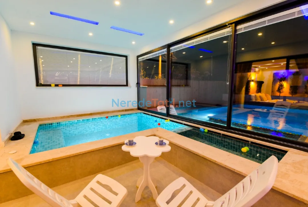 Öne çıkan özelliklerinden biri, özel yüzme havuzudur. Boyutları 4 metre genişliğinde, 6 metre uzunluğunda ve 1.55 metre derinliğinde olan havuz, ısıtmalı ve korunaklı yapısıyla yılın her döneminde kullanım imkanı sunar. Havuz keyfinizin ardından, jakuzi ve sauna da sizi bekliyor. Ayrıca, villada hamam deneyimi yaşayabilir, doğanın tadını çıkarabilirsiniz.