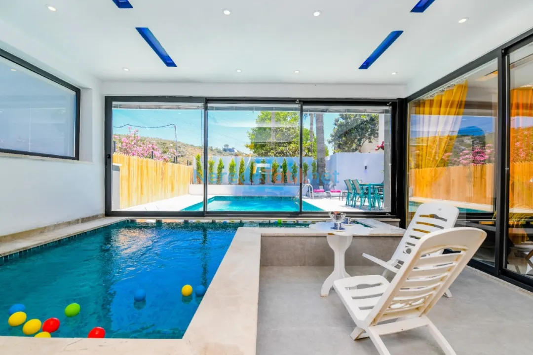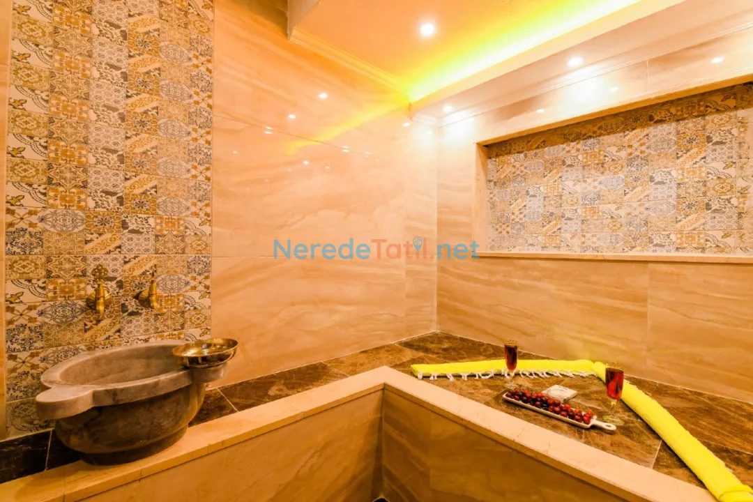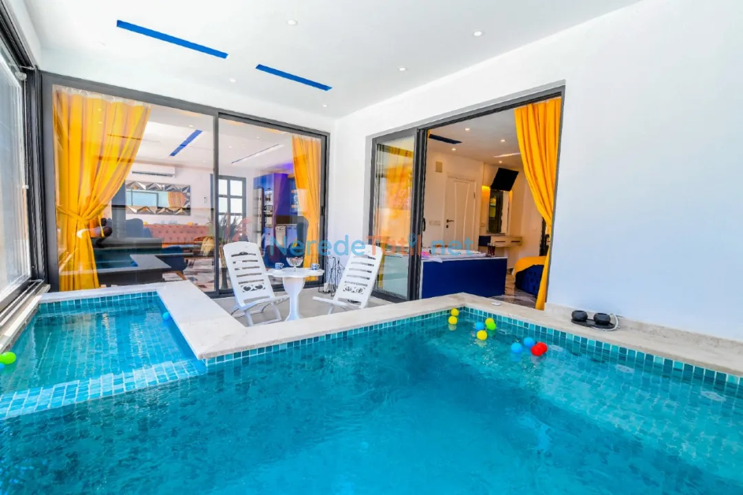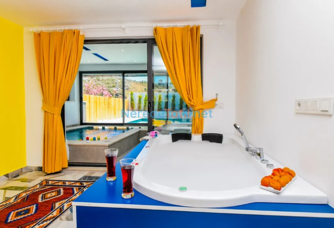 Öne çıkan özelliklerinden biri, özel yüzme havuzudur. Boyutları 4 metre genişliğinde, 6 metre uzunluğunda ve 1.55 metre derinliğinde olan havuz, ısıtmalı ve korunaklı yapısıyla yılın her döneminde kullanım imkanı sunar. Havuz keyfinizin ardından, jakuzi ve sauna da sizi bekliyor. Ayrıca, villada hamam deneyimi yaşayabilir, doğanın tadını çıkarabilirsiniz.
