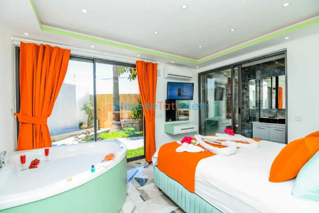 Villamızda ayrıca bahçe keyfi yapabilir, BBQ - Mangal alanında sevdiklerinizle lezzetli yemekler hazırlayabilirsiniz. Tüm bu özellikler, balayı çiftleri ve muhafazakar aileler için mükemmel bir konaklama sunmaktadır.
