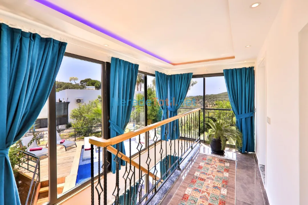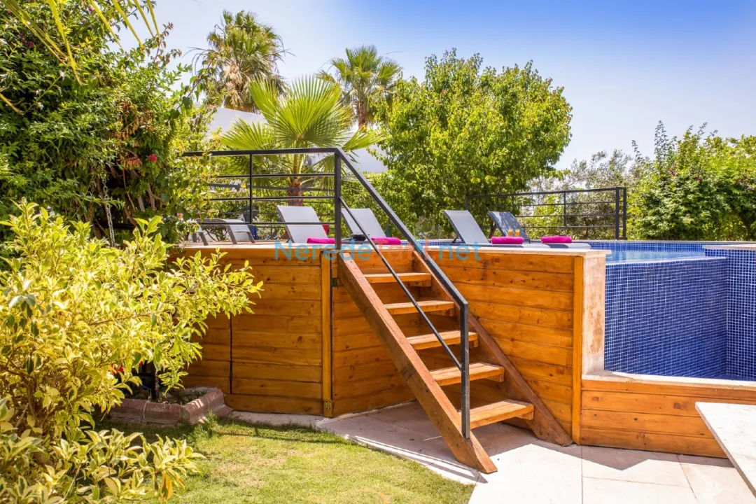 Villanın geniş özel yüzme havuzu, 5 metre genişliğinde, 5 metre uzunluğunda ve 1.55 metre derinliğindedir. Havuz, korunaklı yapısıyla mahremiyet arayan misafirler için idealdir. Ek olarak, ısıtmalı havuz özelliği sayesinde her mevsim keyifli bir yüzme deneyimi sunar.