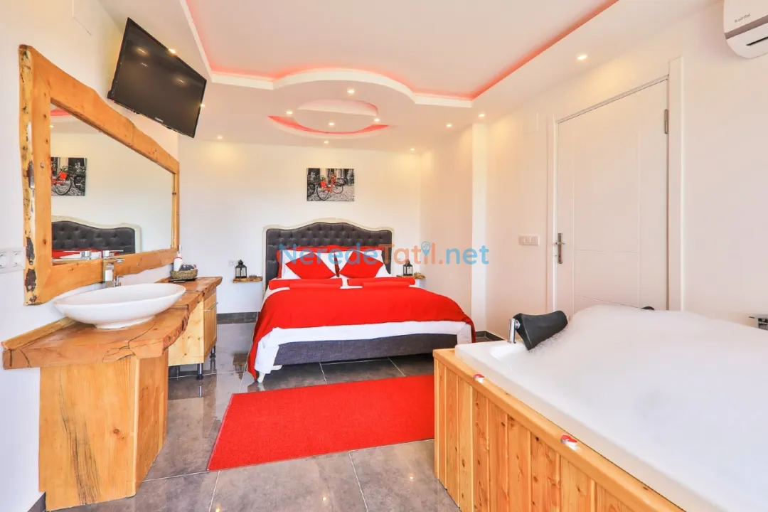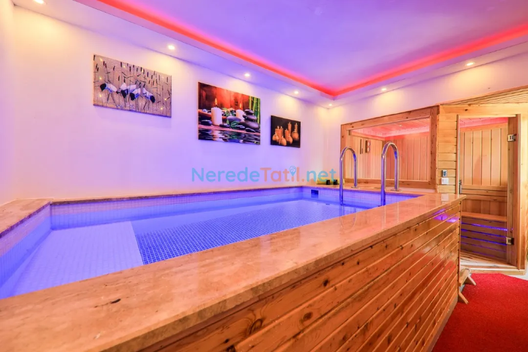 Misafirlerimiz için jakuzi, sauna ve hamam gibi lüks olanaklar da mevcuttur. Villamızın bahçesinde doğa manzarası eşliğinde rahatlayabileceğiniz gibi, BBQ - Mangal alanında keyifli anlar yaşayabilirsiniz. Ayrıca, masa tenisi ve spor aletleri ile eğlenceli ve aktif vakit geçirebilirsiniz.