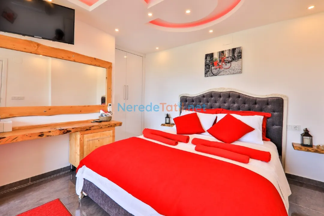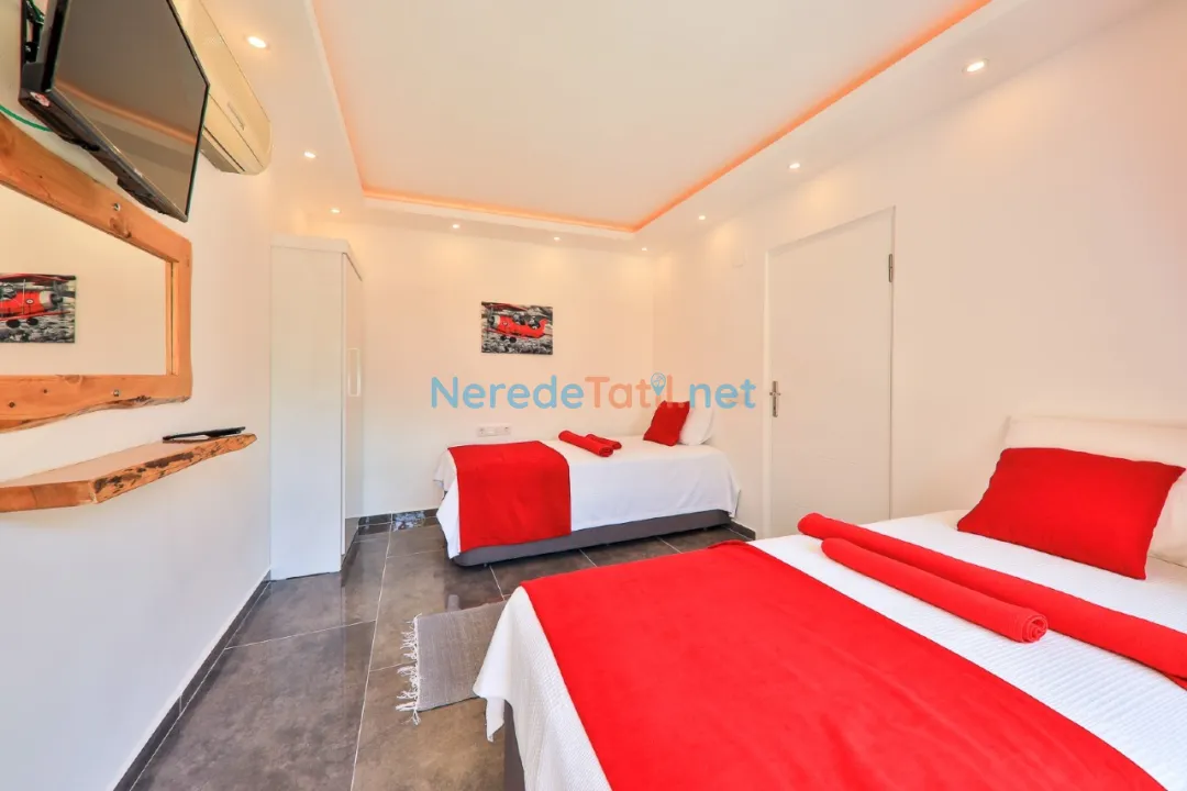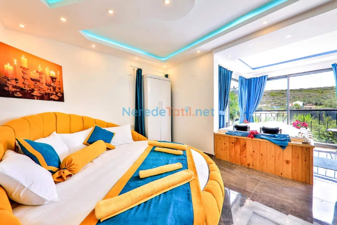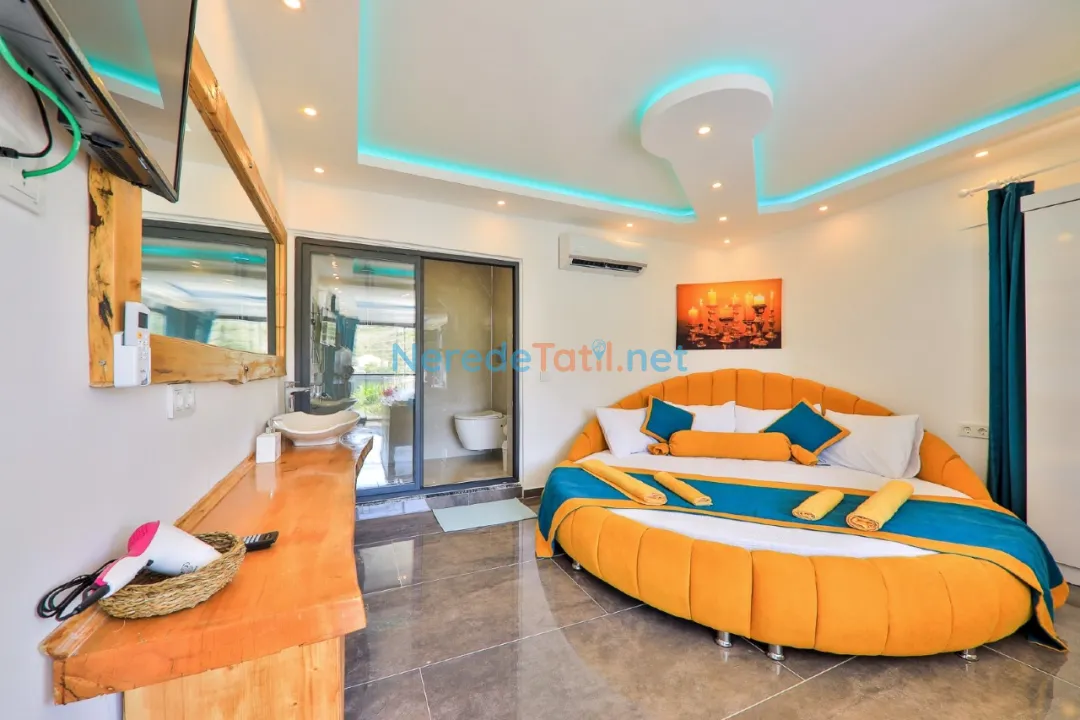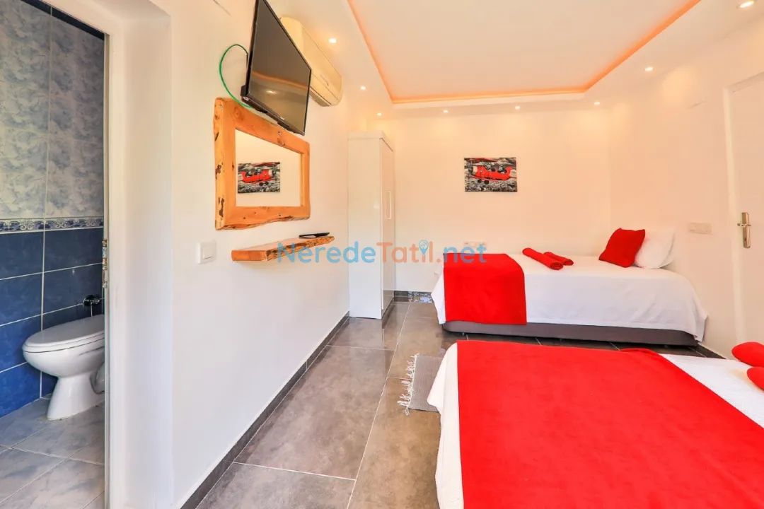 Patara'nın eşsiz doğasında yer alan bu lüks villa, konuklarına unutulmaz bir tatil deneyimi sunuyor. 3 yatak odası ve 4 banyosu ile toplamda 6 kişilik bir kapasiteye sahip olan villamız, konforlu bir konaklama imkanı sunmaktadır. Tüm yatak odalarında çift kişilik yatak bulunmakta olup, ayrıca bir bebek yatağı da mevcuttur.