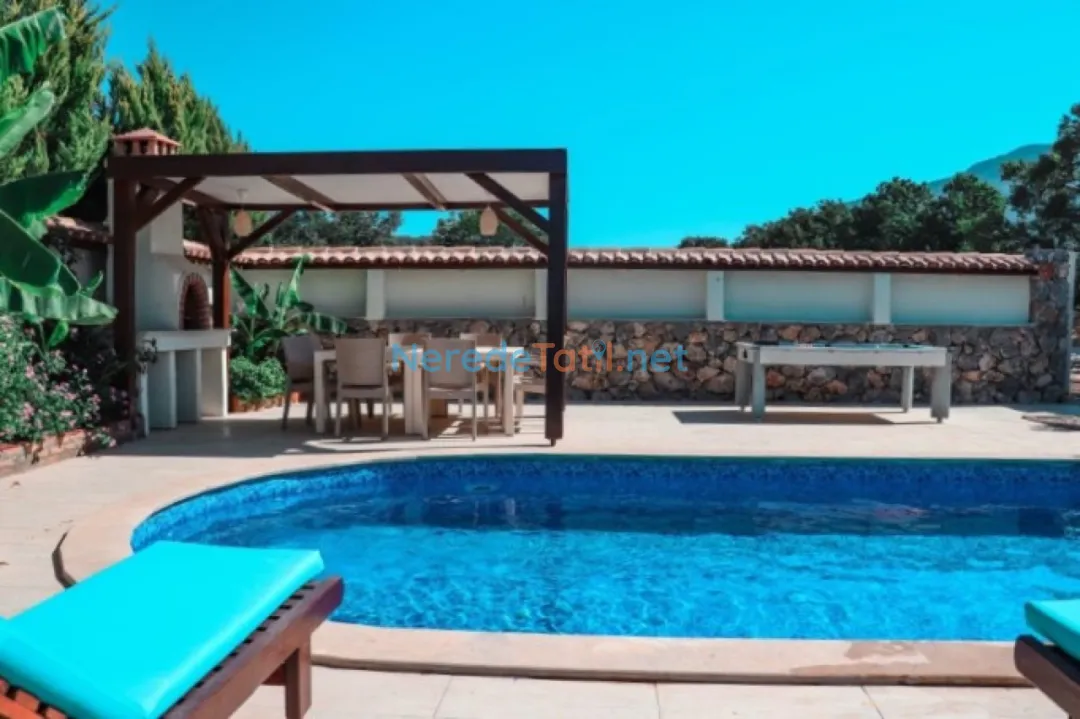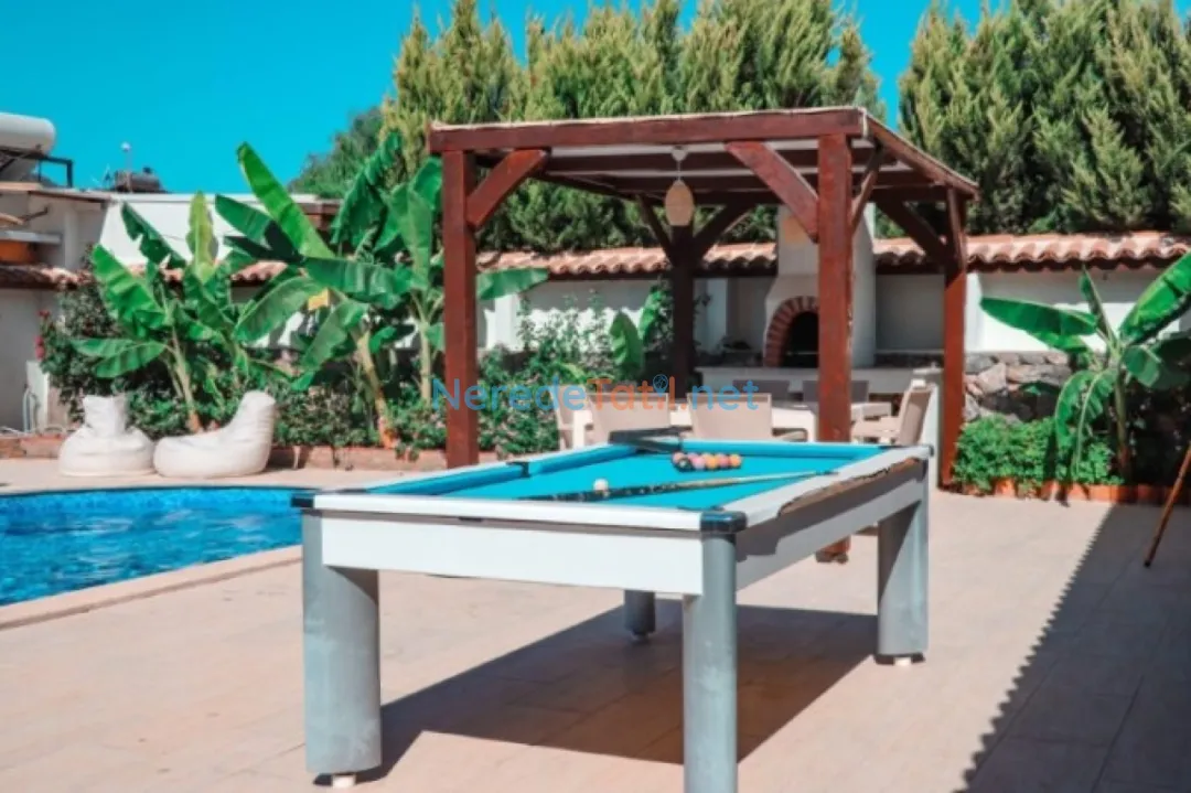 Villanın geniş bahçesi, BBQ - Mangal imkanları ile donatılmıştır ve sevdiklerinizle unutulmaz akşam yemekleri için idealdir. Ayrıca, tatilinizde eğlenceli vakitler geçirebilmeniz için bilardo masası da mevcuttur.