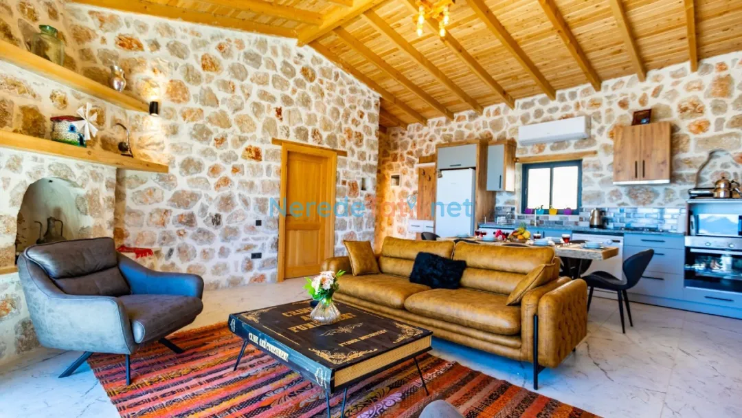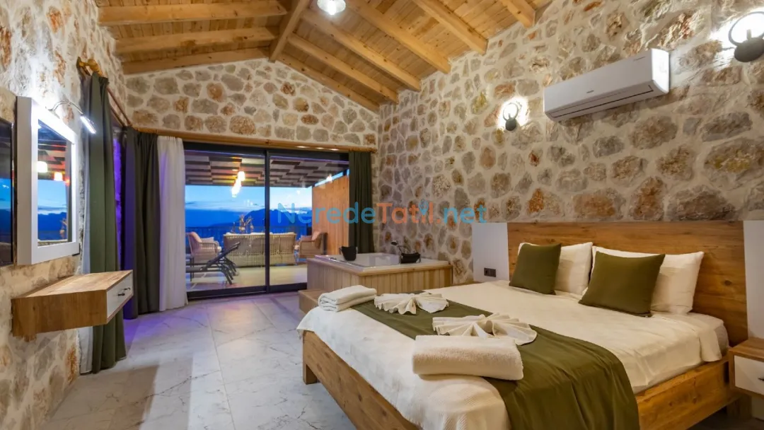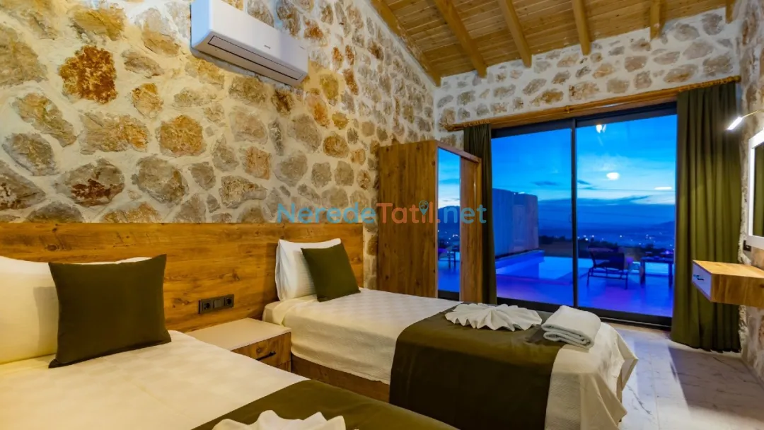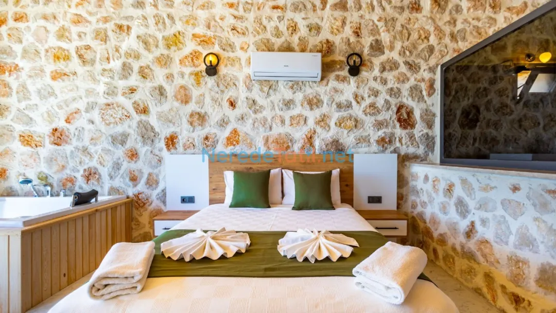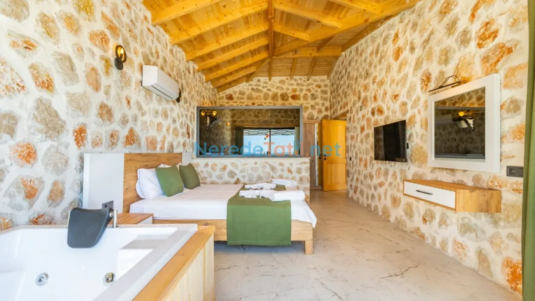 Üzümlü'nün eşsiz doğasında, huzurlu bir tatil arayanlar için ideal bir seçenek sunan bu villada, konforlu bir konaklama deneyimi yaşayabilirsiniz. Villa, dört kişilik konaklama kapasitesi ve iki yatak odası ile aileler ve balayı çiftleri için mükemmel bir tatil imkanı sağlıyor. Çift kişilik yatak ve iki tek kişilik yatak ile konforunuz için her detay düşünülmüş.