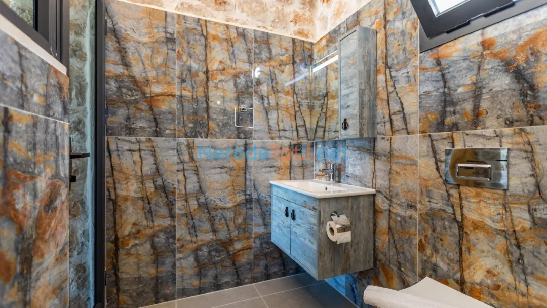 Villamız, lüks ve muhafazakar villa kategorisinde yer almakla birlikte, saç kurutma makinesi ve ütü gibi gerekli detaylar da unutulmamıştır. Üzümlü'nün merkezi ve plajları gibi cazip noktalara olan yakın mesafesi ile tatilinizi kolaylaştırırken, market ve restoranlara sadece 1 km uzaklıkta bulunuyorsunuz.