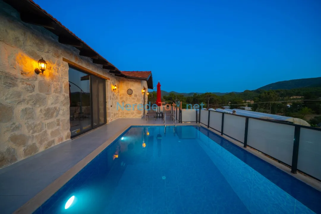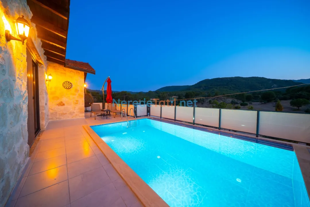 Kaş'ta konforlu ve huzurlu bir tatil arayanlar için mükemmel bir seçenek sunuyoruz. Bu lüks balayı villası, doğa manzarası ile çevrili olup, tatiliniz boyunca ihtiyacınız olan her türlü konforu sağlıyor. Villanın özel havuzu, 3 metre genişliğinde ve 6 metre uzunluğunda olup, 1.45 metre derinliğindedir, böylece konuklar sıcak yaz günlerinde serinleme fırsatı bulabilirler.