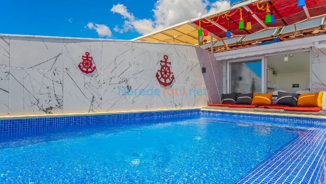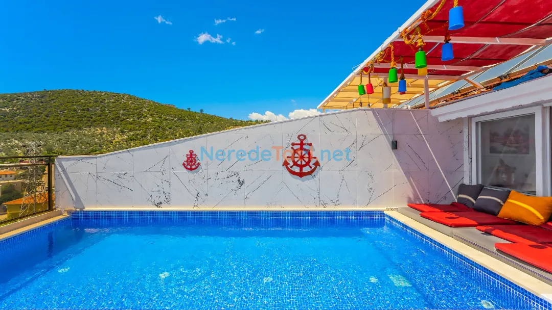 Kalkan'ın büyüleyici doğasında, deniz ve doğa manzaralı bu lüks villa, unutulmaz bir tatil için sizi bekliyor. Villamız, özel yüzme havuzuyla dikkat çekiyor; genişliği 3.5 metre, uzunluğu ise 5.5 metre olup, derinliği 1.1 metredir. Bu özellikleriyle serin suların keyfini doyasıya çıkarabilirsiniz.