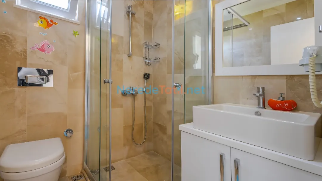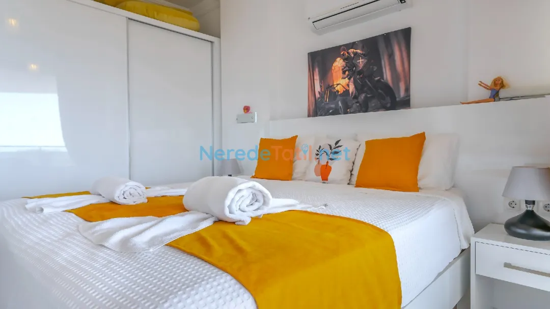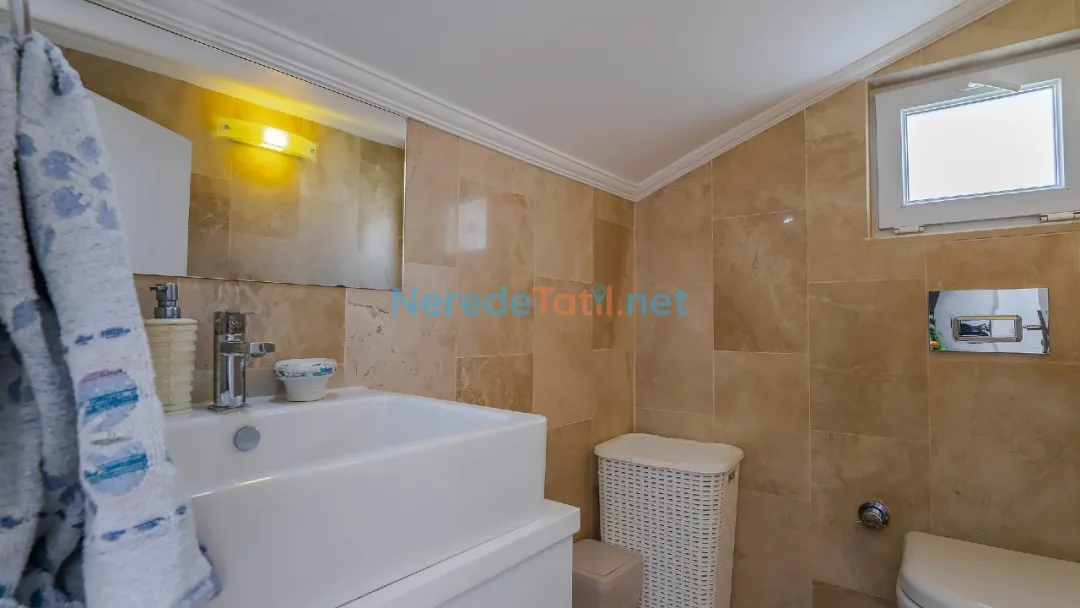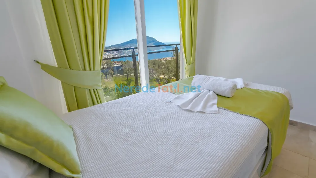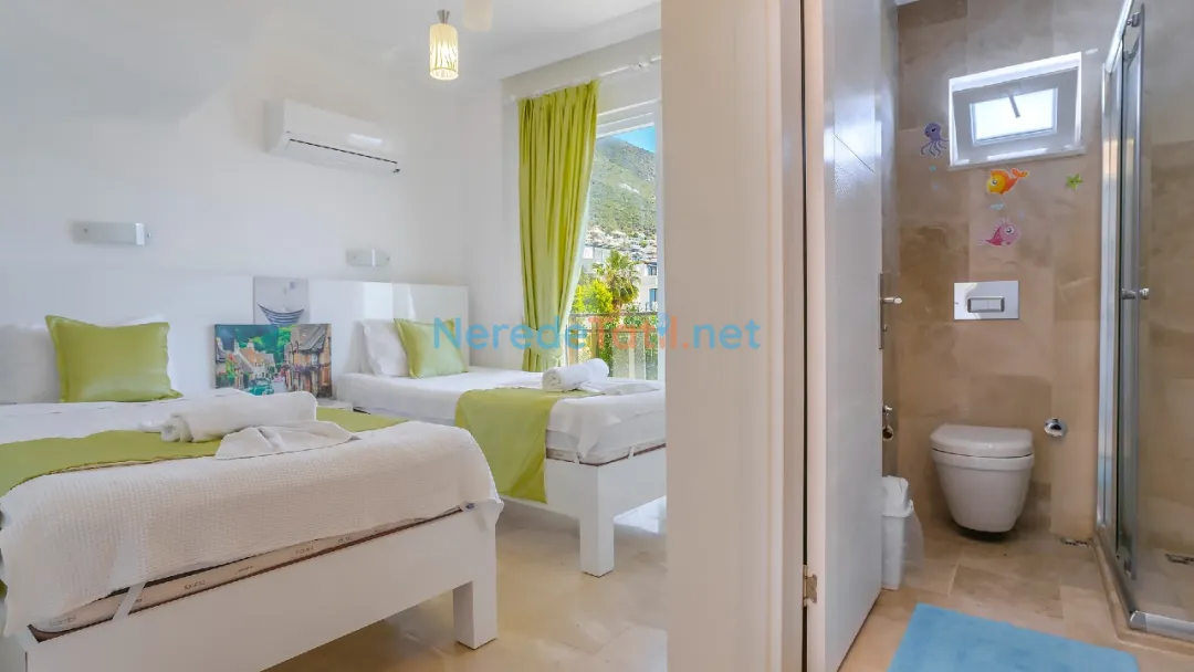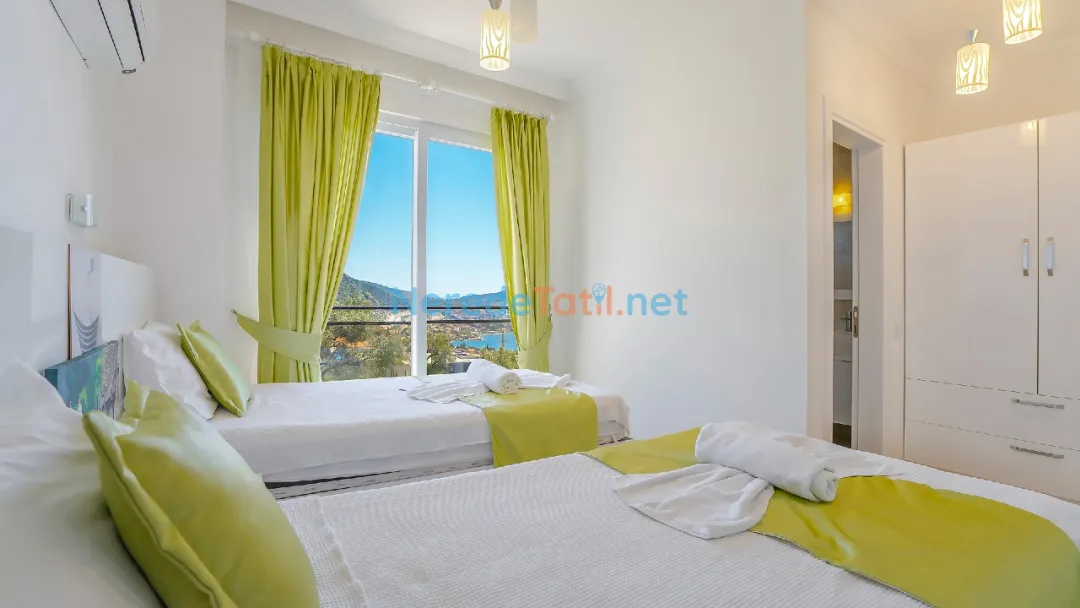 Üç yatak odası ve üç banyodan oluşan bu villa, altı kişiye kadar konaklama imkanı sunarak aileler veya arkadaş grupları için mükemmel bir seçenek sunuyor. Konforlu yatak odalarından ikisi çift kişilik, diğeri ise iki tek kişilik yatak içeriyor. Böylece konukların konforu için her türlü detay düşünülmüştür.