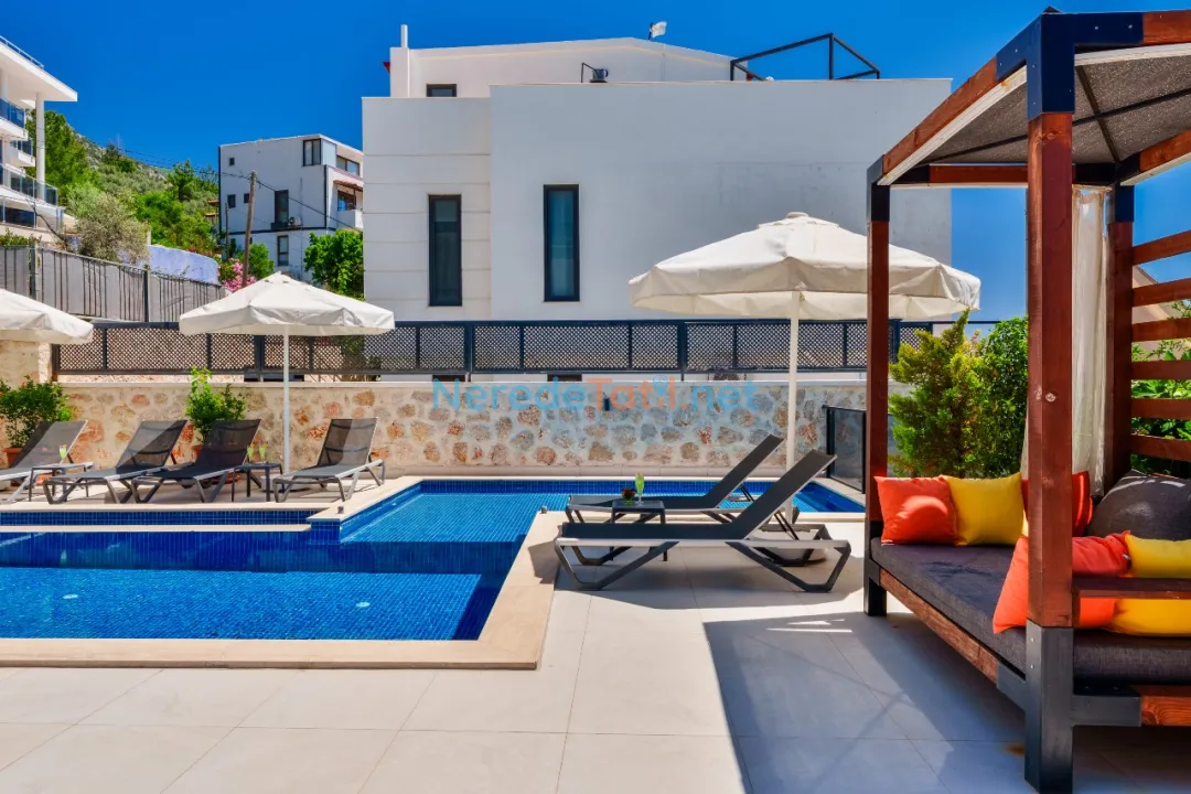 Kızıltaş'ın eşsiz doğasında yer alan bu lüks villa, 8 kişilik kapasitesi ve 4 yatak odası ile rahat bir konaklama imkanı sunar. Her biri konfor düşünülerek tasarlanmış 6 banyo bulunmaktadır. Villanın en dikkat çekici özelliklerinden biri, deniz manzarası eşliğinde tatil yapma imkanı sunmasıdır.