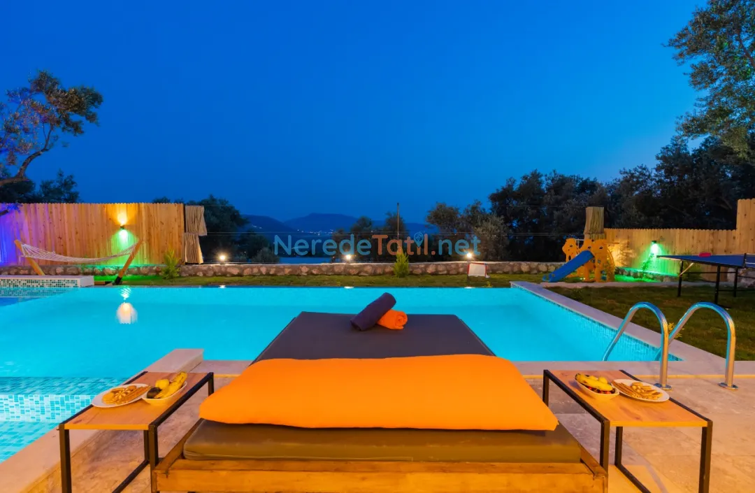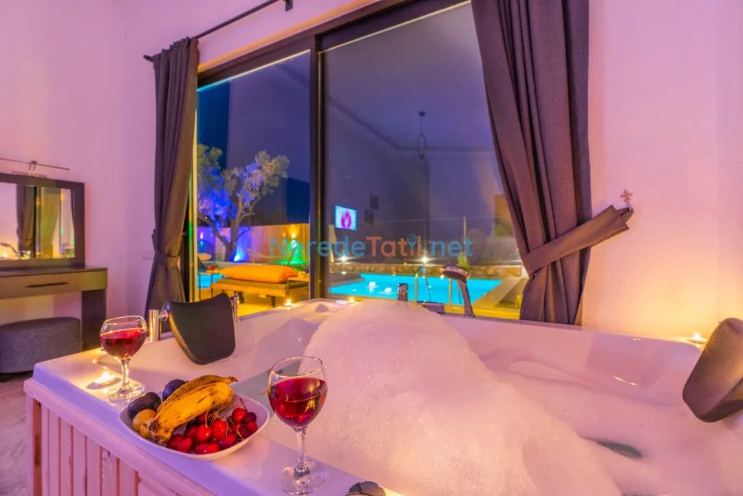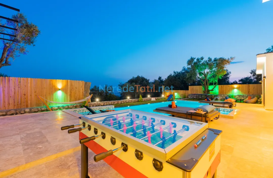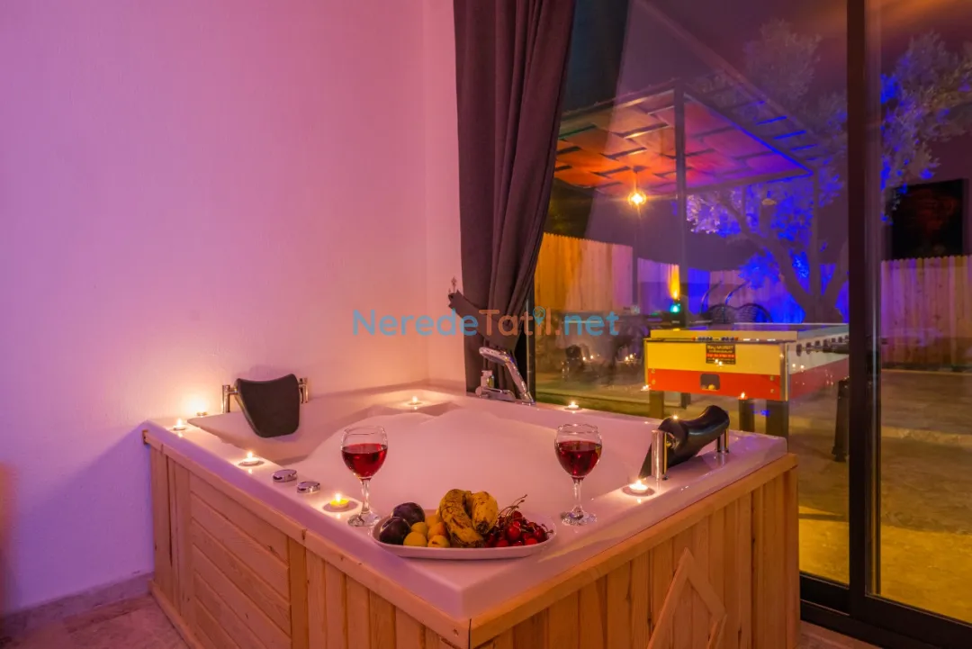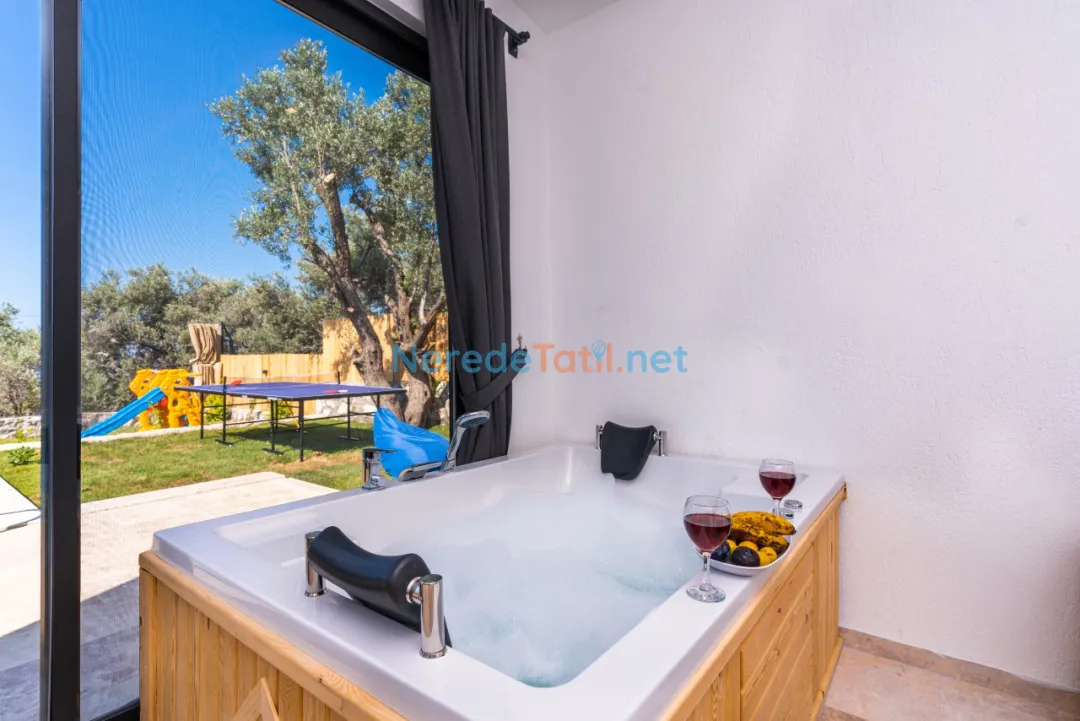 Villa içinde bulunan jakuzi ile tatilinizi daha da özel kılabilirsiniz. Ayrıca geniş bahçesi ve BBQ alanı sayesinde açık havada keyifli zaman geçirebilirsiniz. Çocuklar için özel oyun alanı ve yetişkinler için langırt ve masa tenisi gibi oyun seçenekleri mevcuttur.