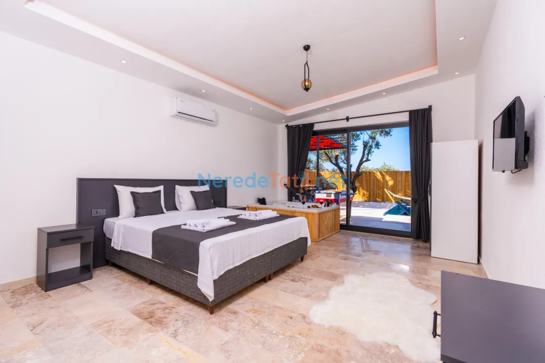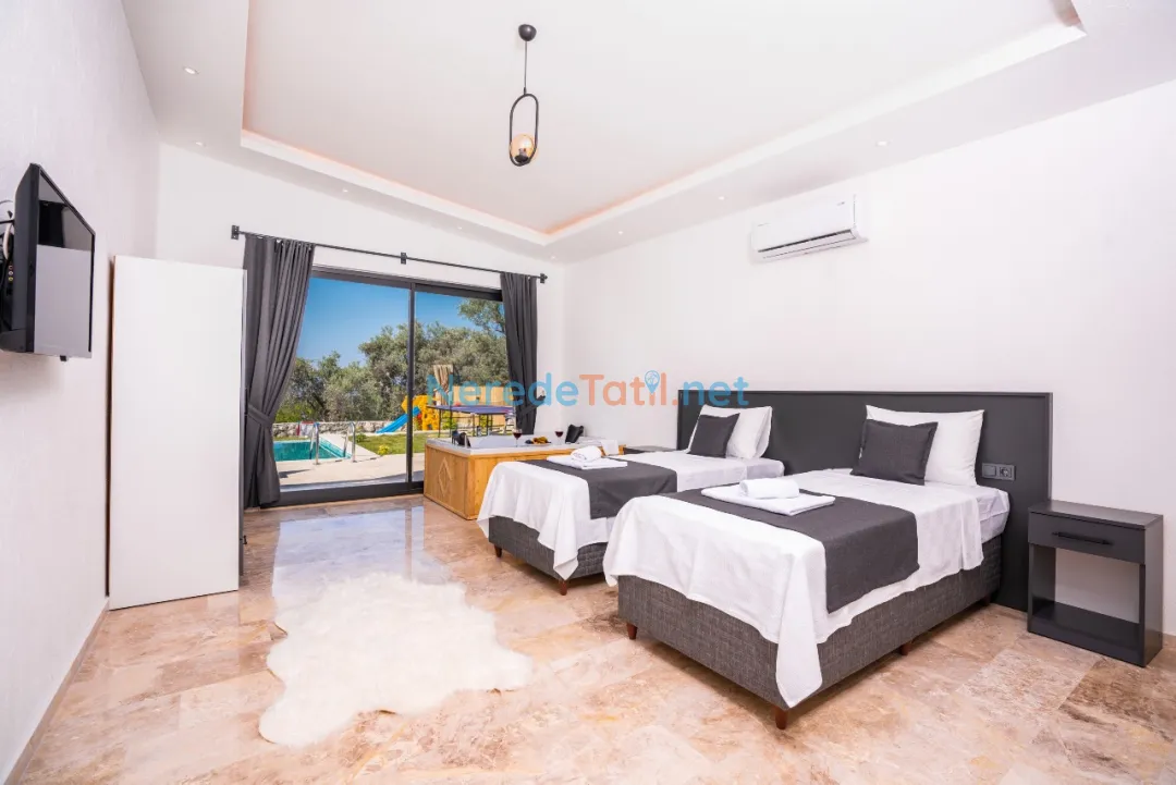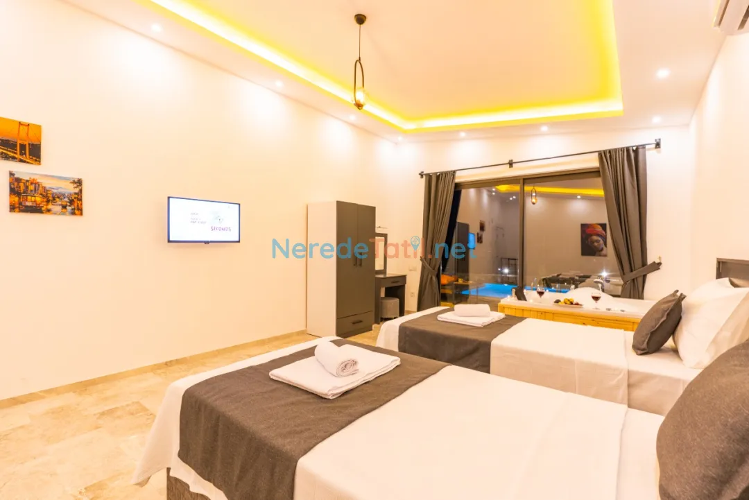 Çayköy'ün büyüleyici doğası içinde konumlanmış olan bu lüks villa, dört kişilik konaklama kapasitesi sunarak sevdiklerinizle huzurlu ve özel bir tatil deneyimi yaşamanızı sağlar. İki yatak odası ile rahat bir konaklama sunan villada, bir adet çift kişilik yatak ve iki adet tek kişilik yatak bulunmaktadır. İki banyo ile konforlu bir tatil geçirmenizi garanti eder.