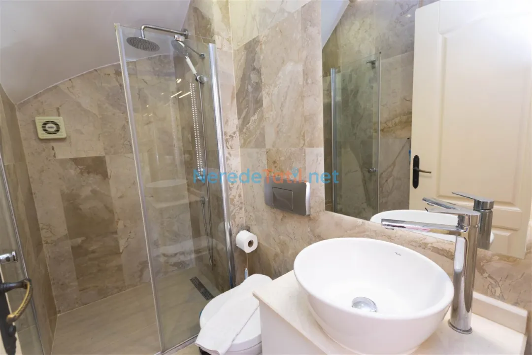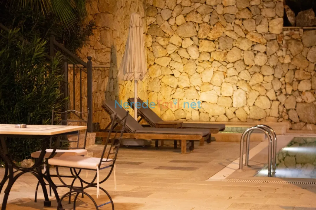 Villanın dış mekanında geniş bir bahçe ve BBQ - Mangal alanı bulunmaktadır. Doğa ile iç içe bu alanda keyifli zamanlar geçirebilir, sevdiklerinizle unutulmaz anılar biriktirebilirsiniz. Villa, korunaklı havuz özelliği ile muhafazakar aileler için de uygun olduğundan, gizlilik içerisinde tatilin tadını çıkarabilirsiniz.