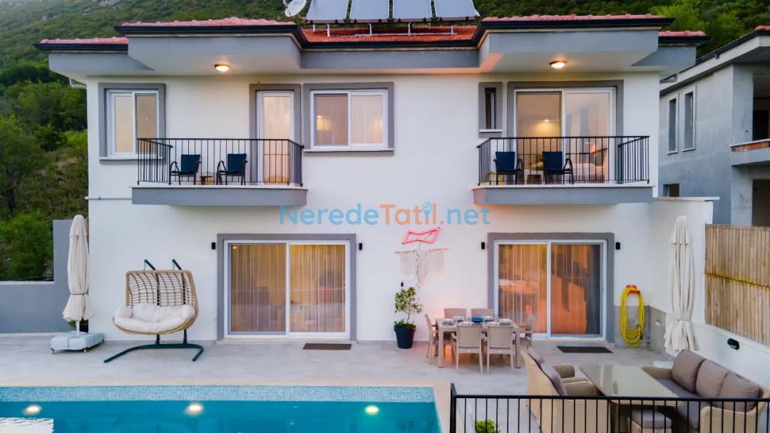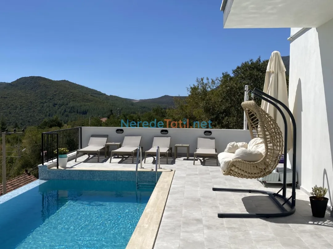 Misafirler, 350 cm genişlik, 800 cm boy ve 160 cm derinliğindeki özel yüzme havuzunun tadını çıkarabilir. Villanın eşsiz doğal manzarası, konuklara huzur ve dinginlik sunarken, jakuzi keyfi de tatilinize ayrıcalık katıyor.