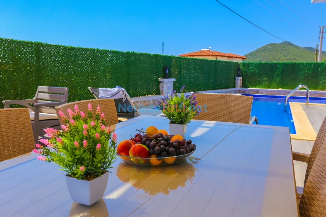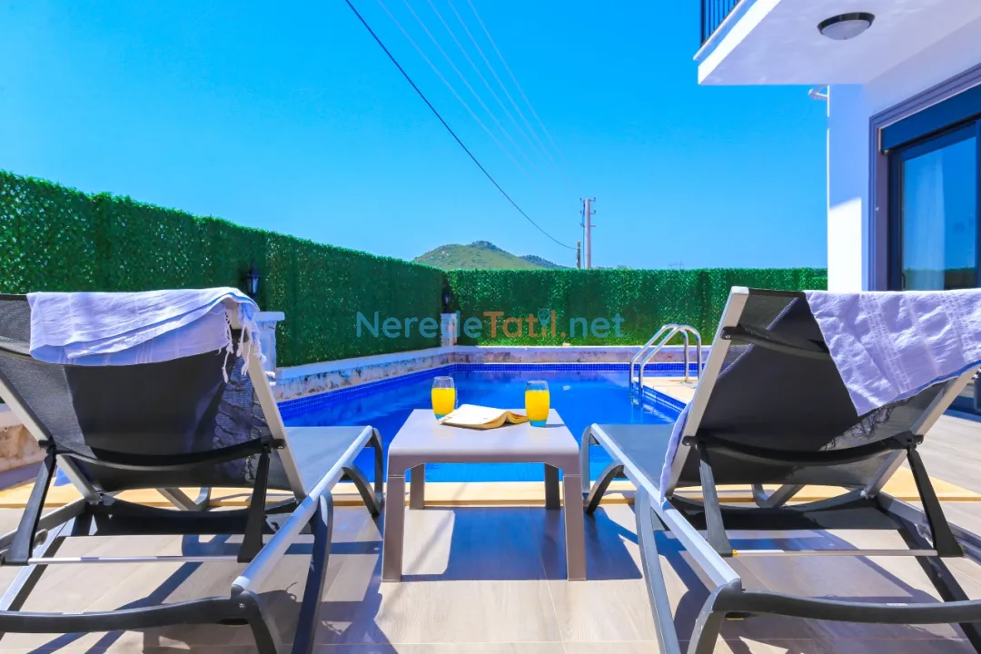 Özel yüzme havuzunun ölçüleri 3 metre genişliğinde, 8 metre uzunluğunda ve 1.5 metre derinliğindedir, bu da sizi serinletirken güvenli bir yüzme deneyimi sunar. Villanın doğa manzarası, tatiliniz boyunca huzur ve dinginlik sunacaktır.