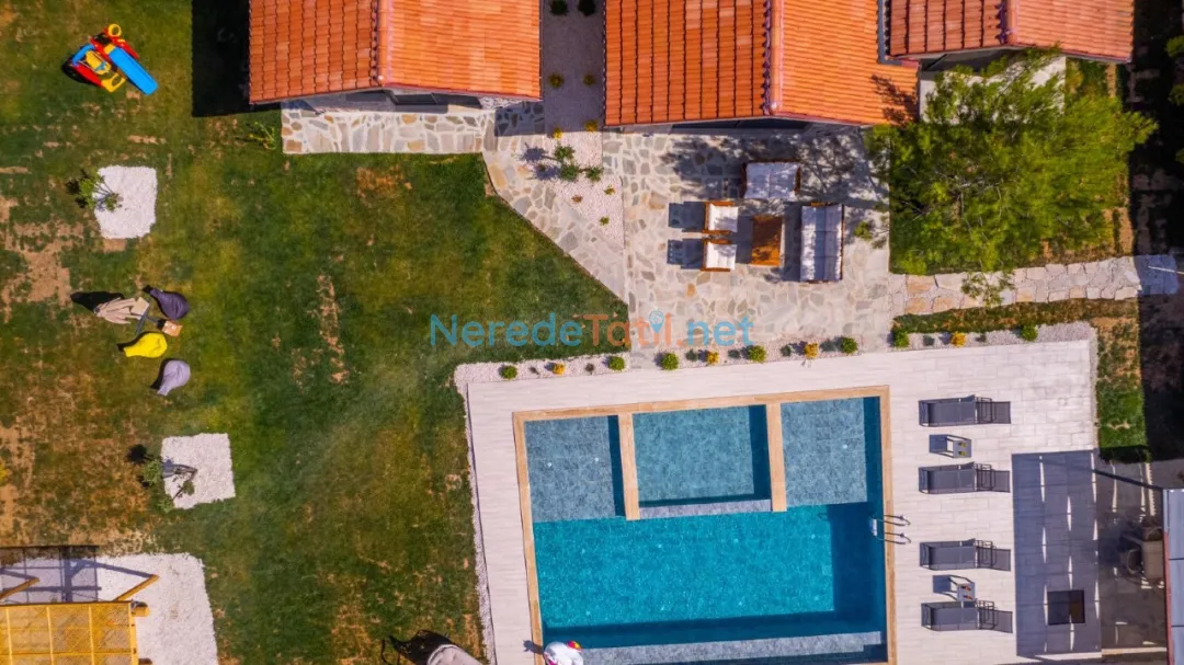 Villanın özel tasarımlı korunaklı yüzme havuzu 4 metre genişliğinde, 9.5 metre uzunluğunda ve 1.5 metre derinliğindedir. Havuzun korunaklı yapısı, gözlerden uzak bir tatil imkanı sunar. Ayrıca, villanın jakuzi özelliği, rahatlamak ve stres atmak için mükemmel bir fırsat sunuyor.
