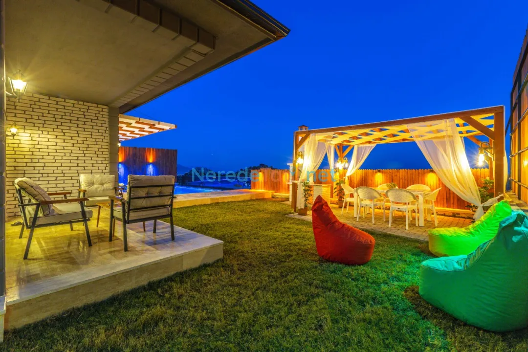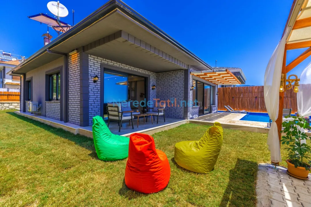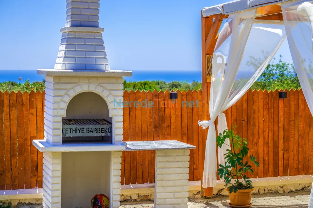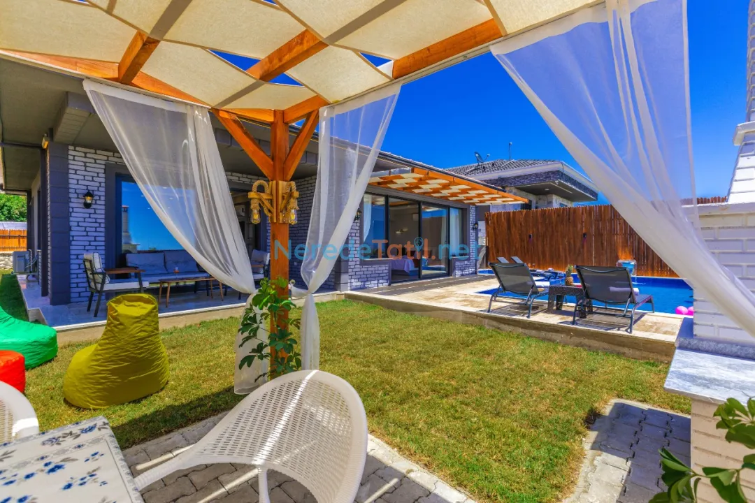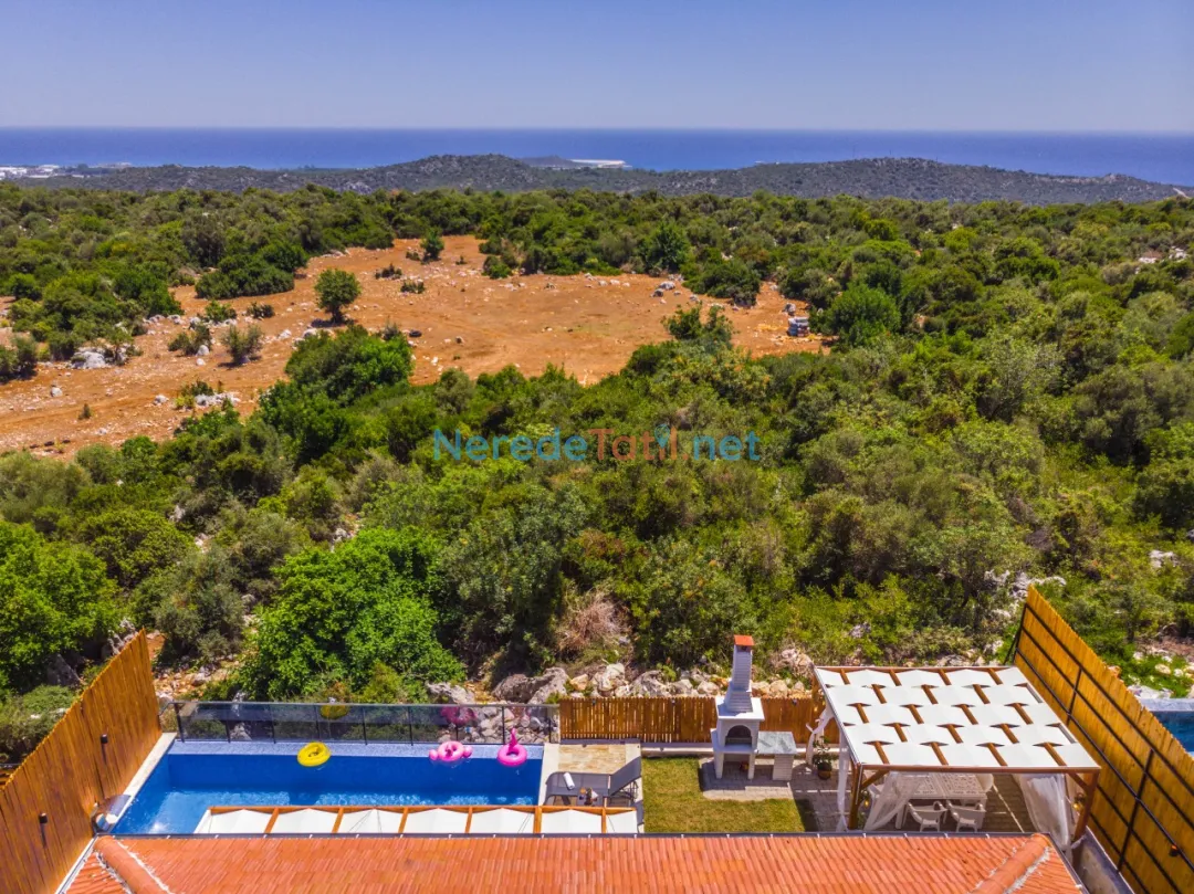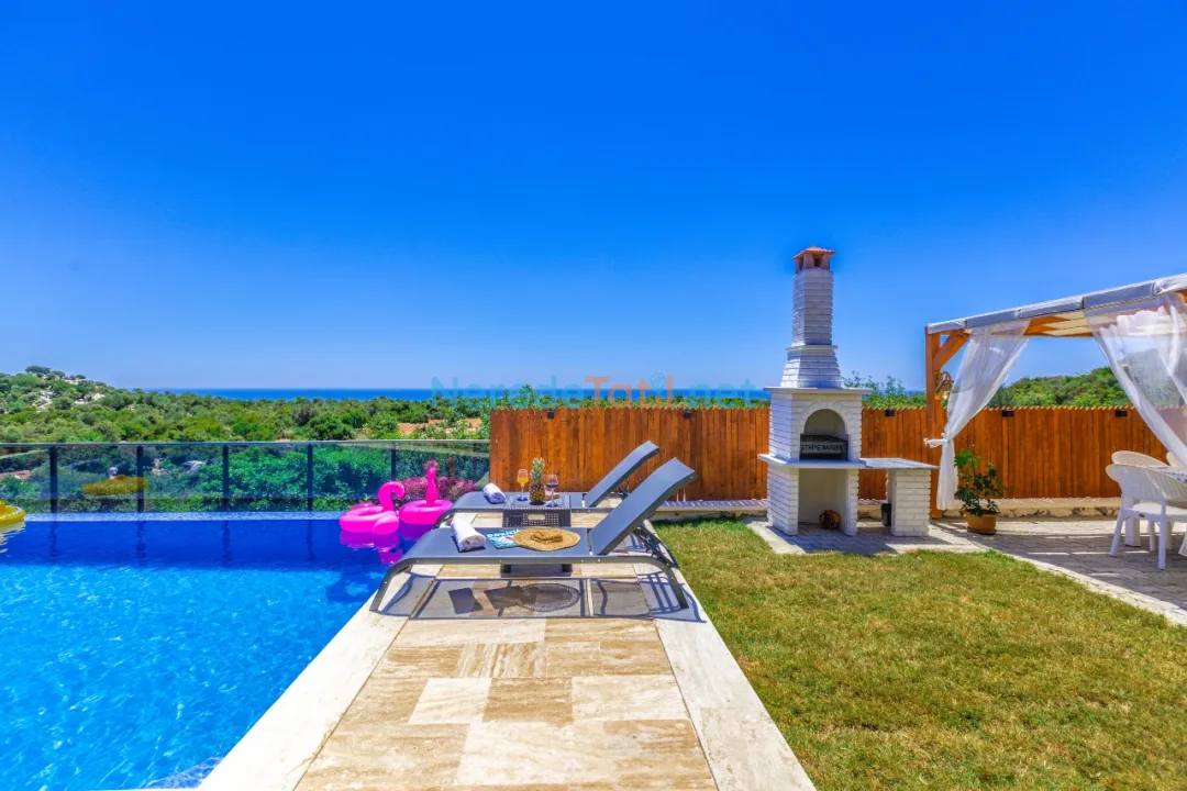 Bahçede ise BBQ mangal yapabilir ve doğa manzarasının tadını çıkarabilirsiniz. Araçları için otopark imkanı sunan villa, şehir merkezine 5 km, plaja 9 km ve en yakın markete sadece 1 km uzaklıktadır. Çocuk havuzu ve kapalı havuz bulunmamakla birlikte, bu villa balayı çiftleri ve muhafazakar tatil arayanlar için de idealdir.