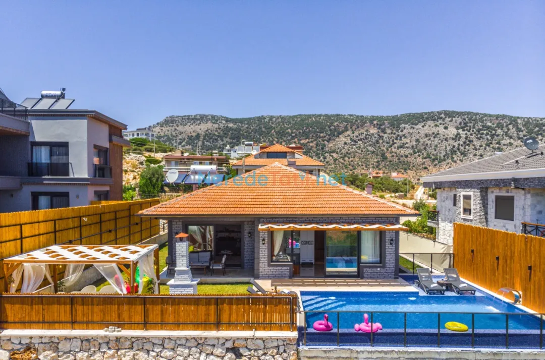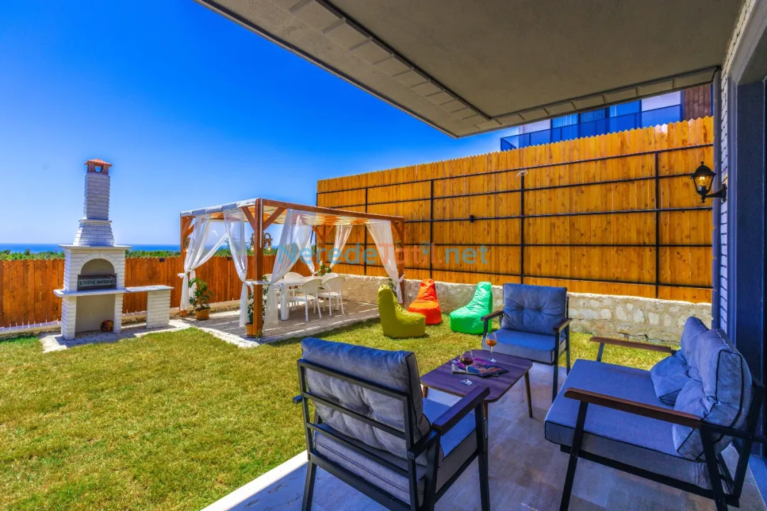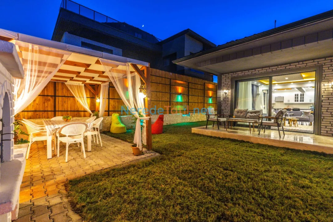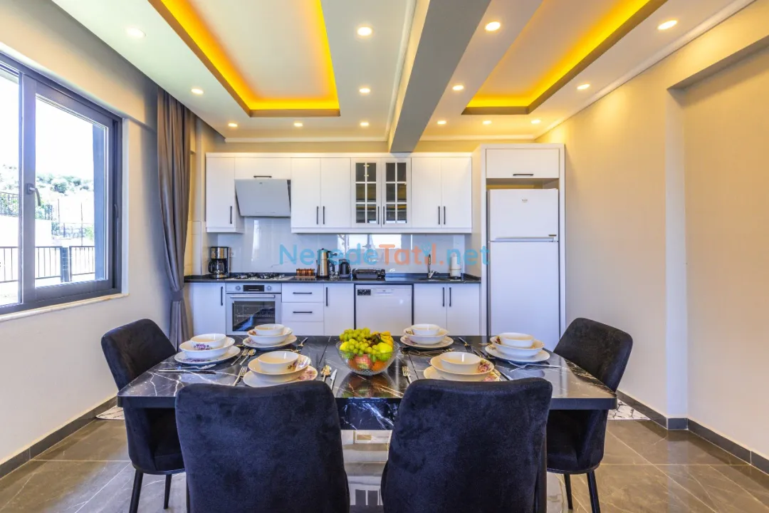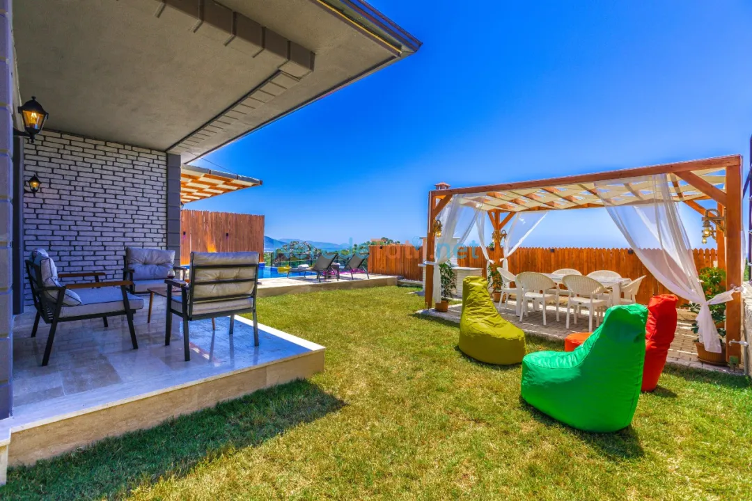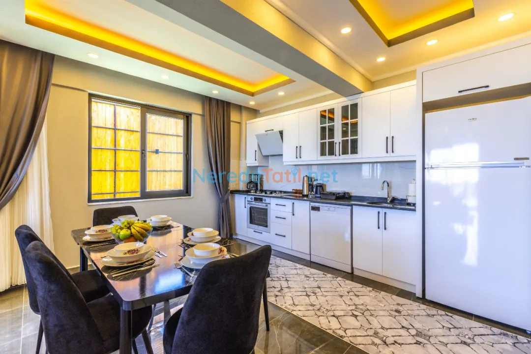 Bahçede ise BBQ mangal yapabilir ve doğa manzarasının tadını çıkarabilirsiniz. Araçları için otopark imkanı sunan villa, şehir merkezine 5 km, plaja 9 km ve en yakın markete sadece 1 km uzaklıktadır. Çocuk havuzu ve kapalı havuz bulunmamakla birlikte, bu villa balayı çiftleri ve muhafazakar tatil arayanlar için de idealdir.